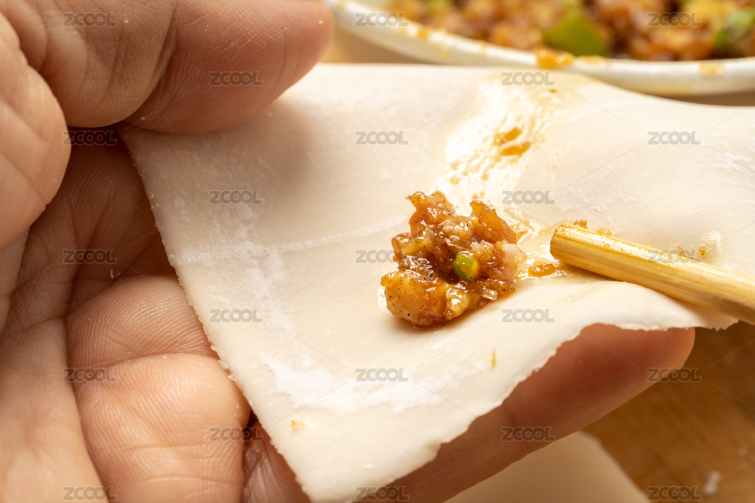 包馄饨餐饮制作手部特写