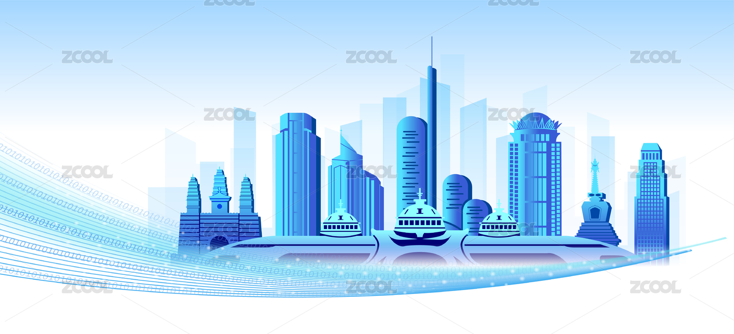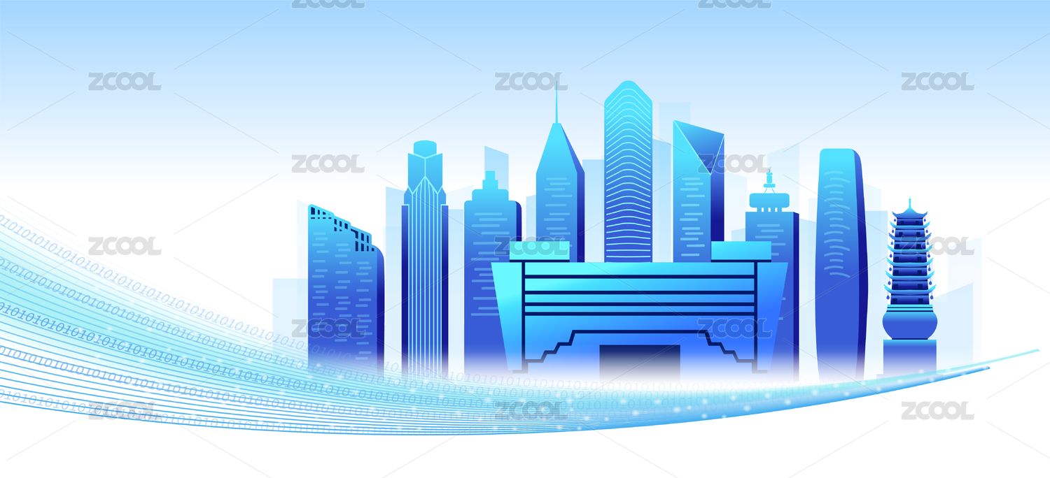 中国新疆乌鲁木齐市商务科技城市彩色插画
