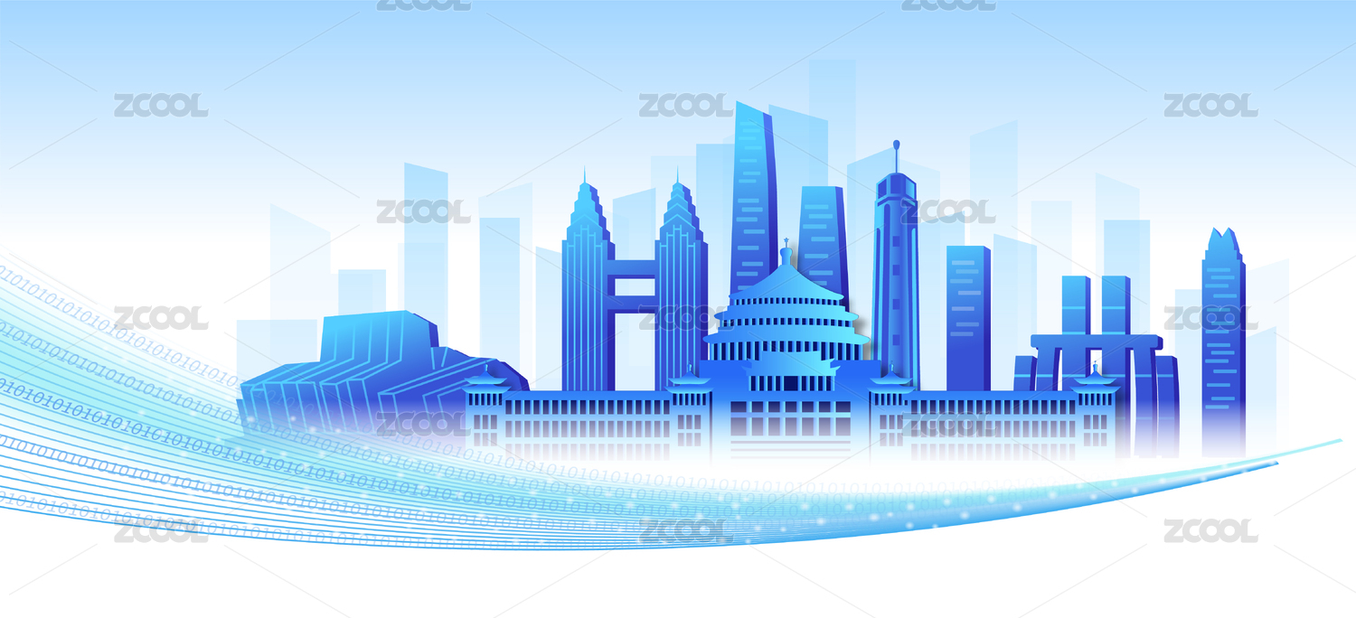 中国内蒙古呼和浩特市商务科技城市彩色插画