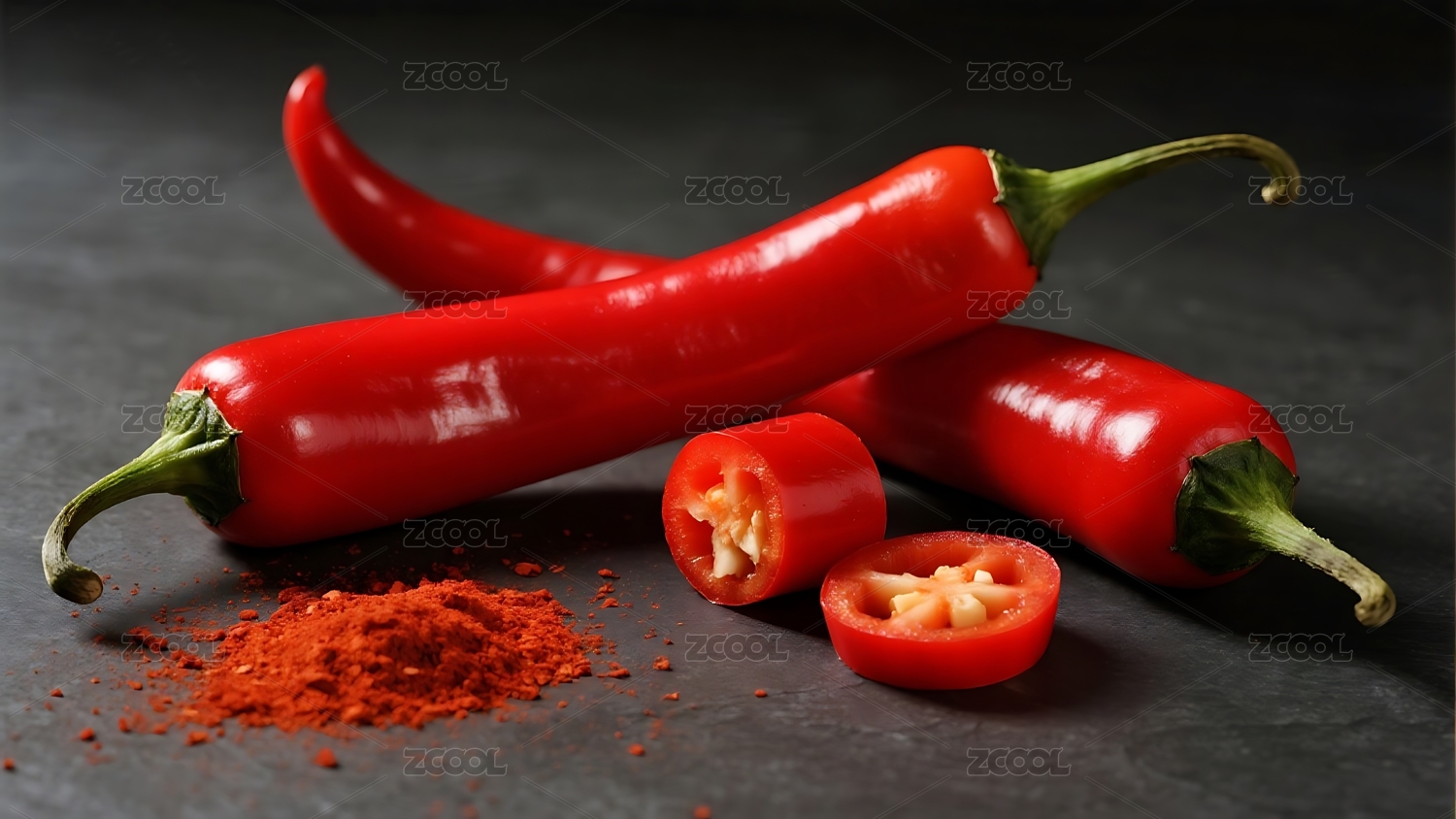 红辣椒与辣椒粉特写