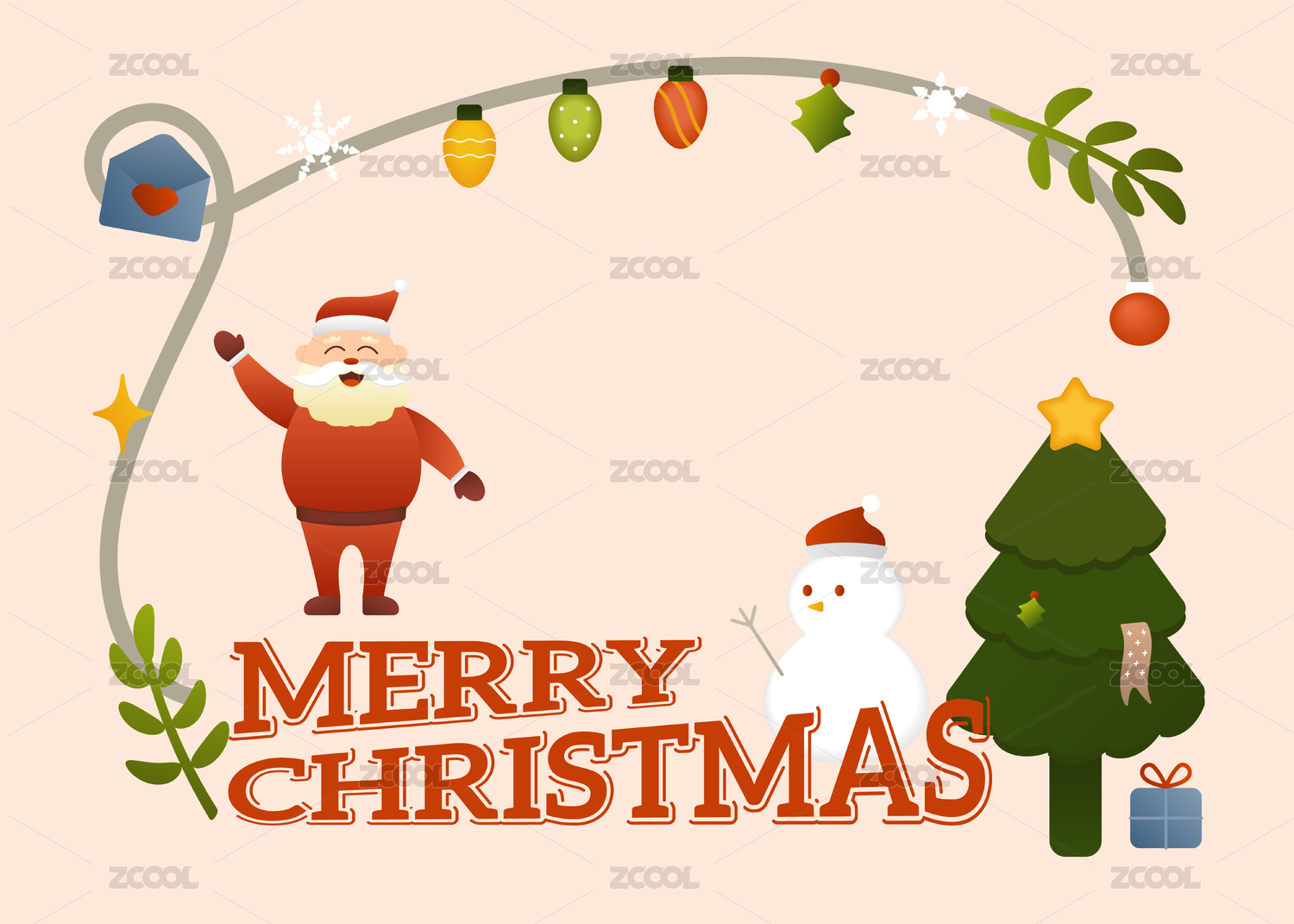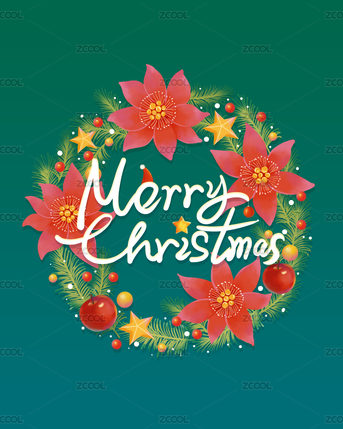 清新插画圣诞花环