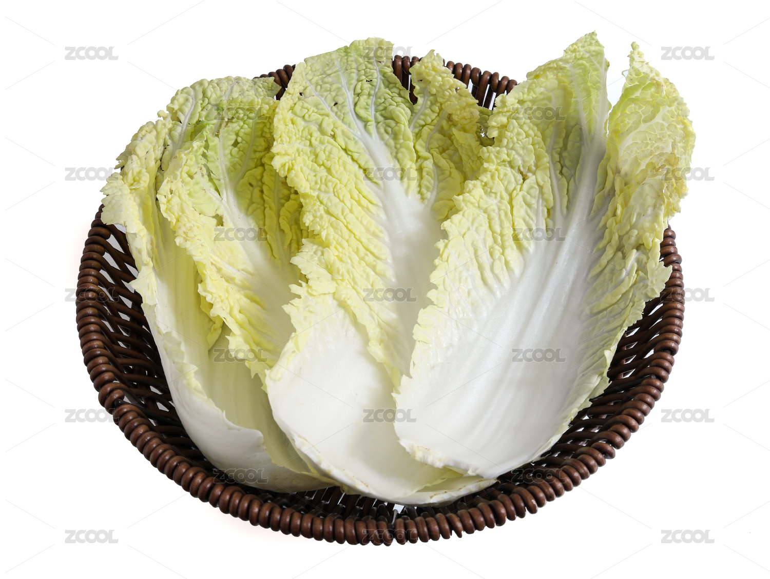 篮子里的新鲜蔬菜白菜娃娃菜特写的白底图