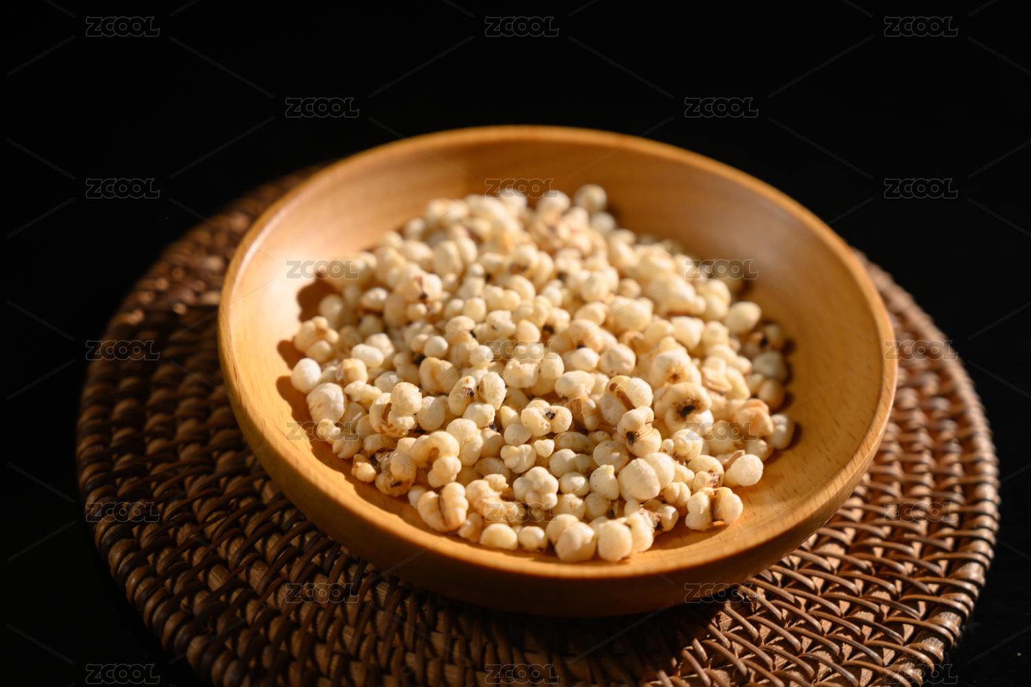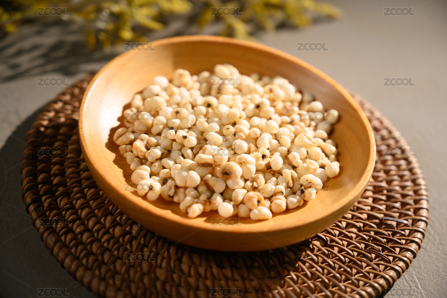 桌面上的盘子里的干爽的薏米仁