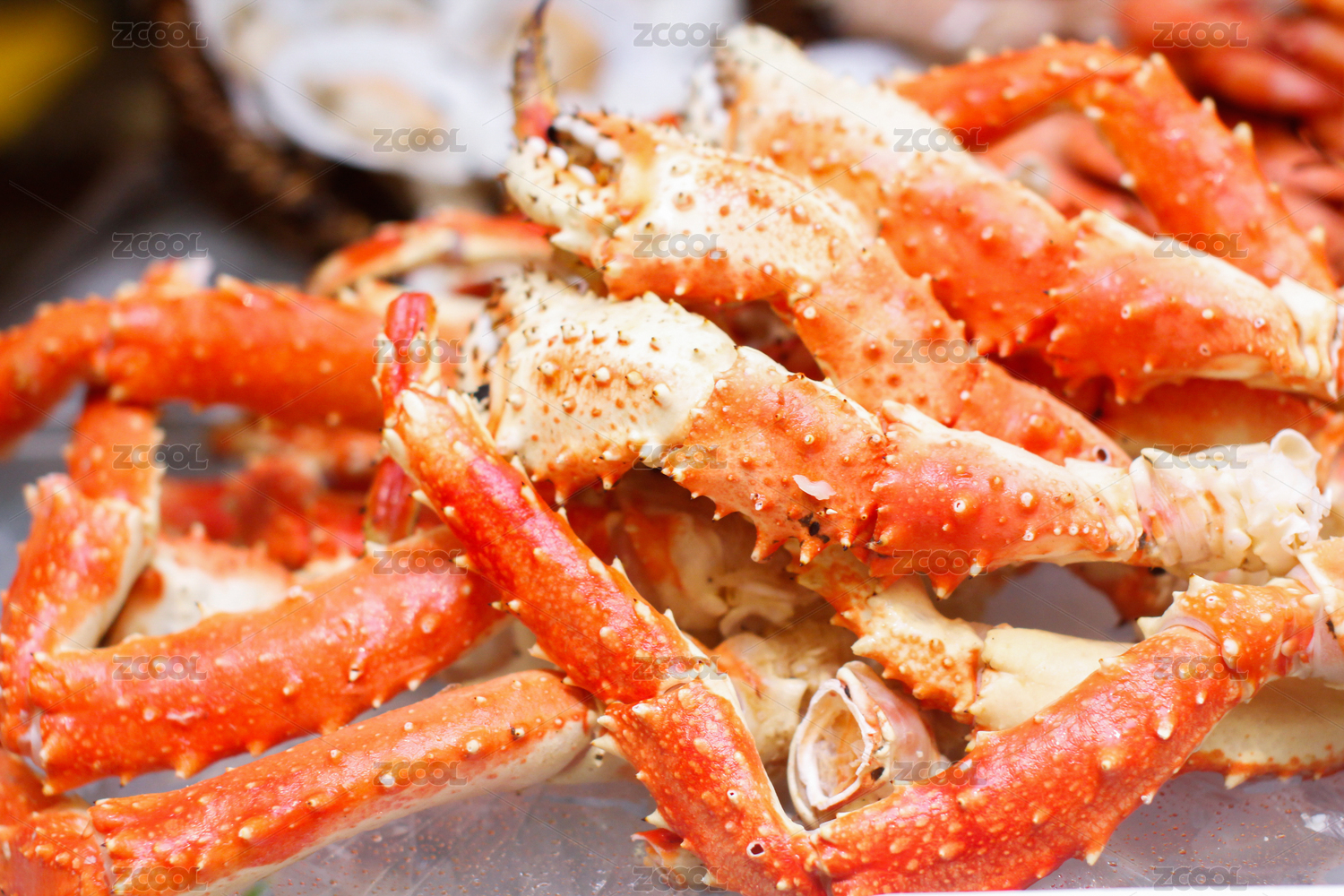 黑色背景冰块上放着阿拉斯加长脚蟹