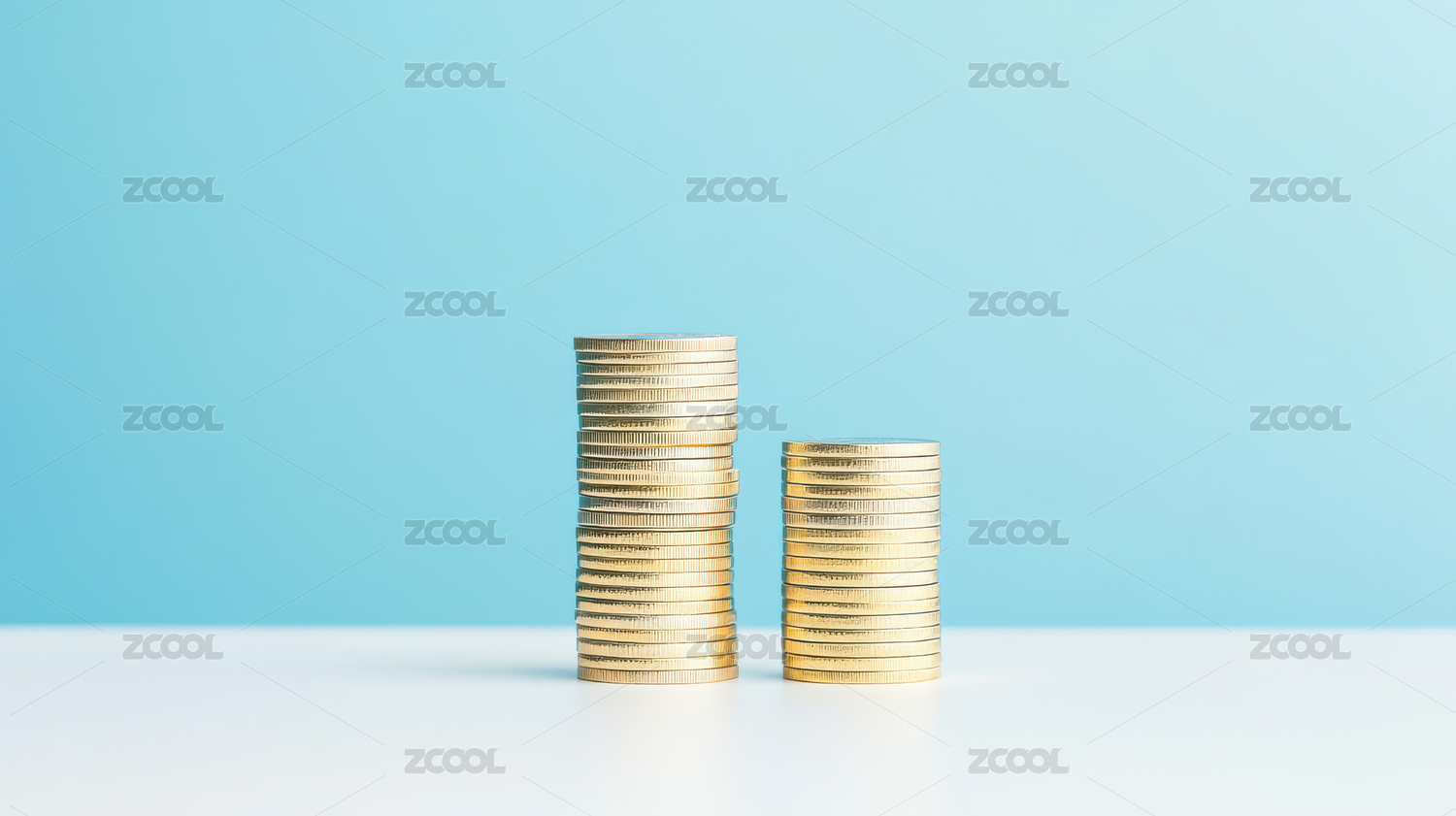 金币堆叠在白色背景上