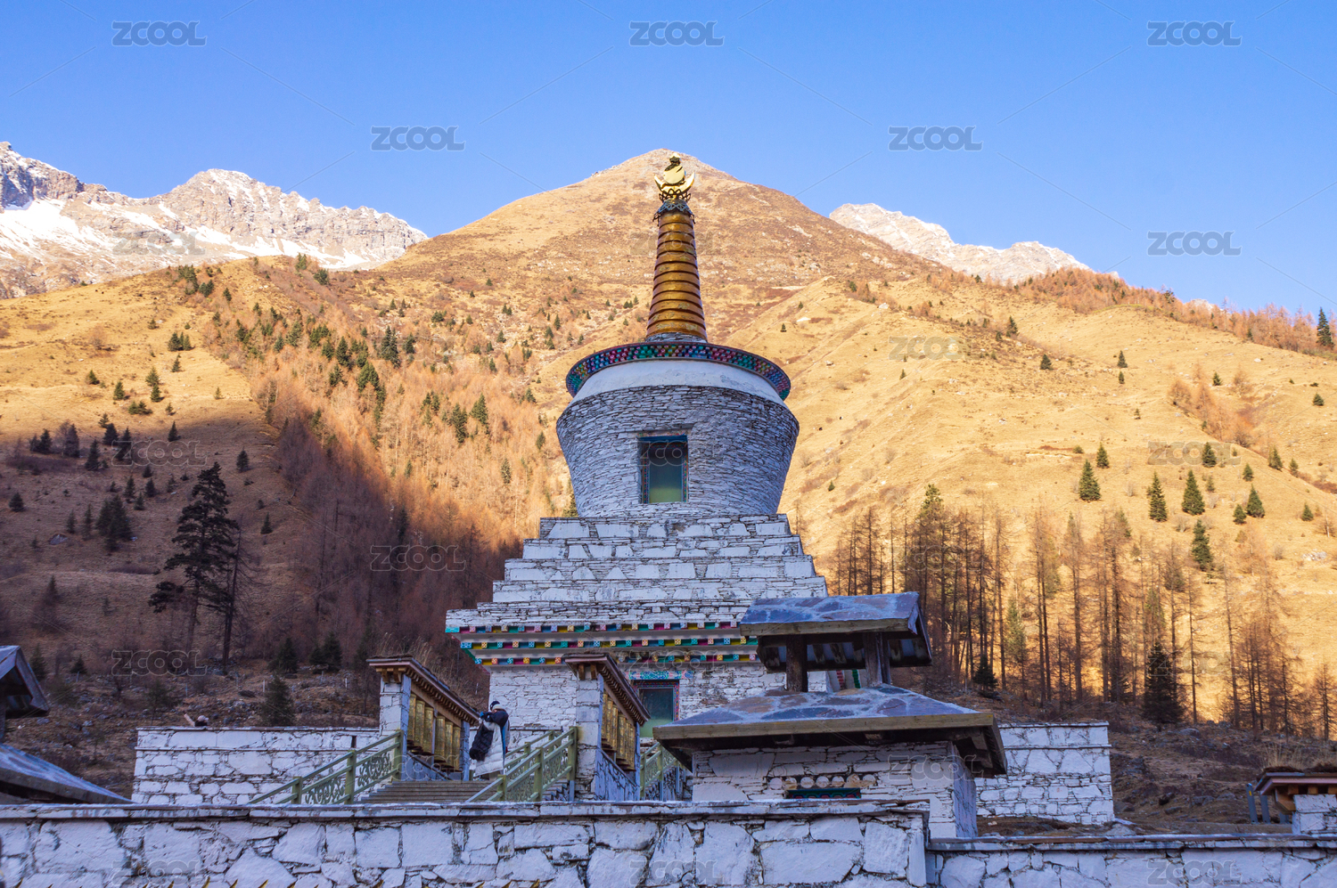 四川阿坝四姑娘山双桥沟风景区的白塔秋天