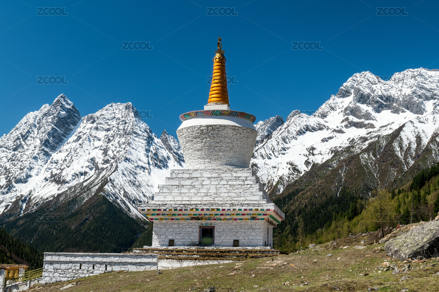 四川阿坝黑水县达古冰川的白塔和洛格斯神山