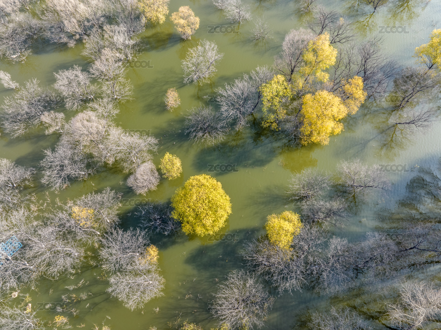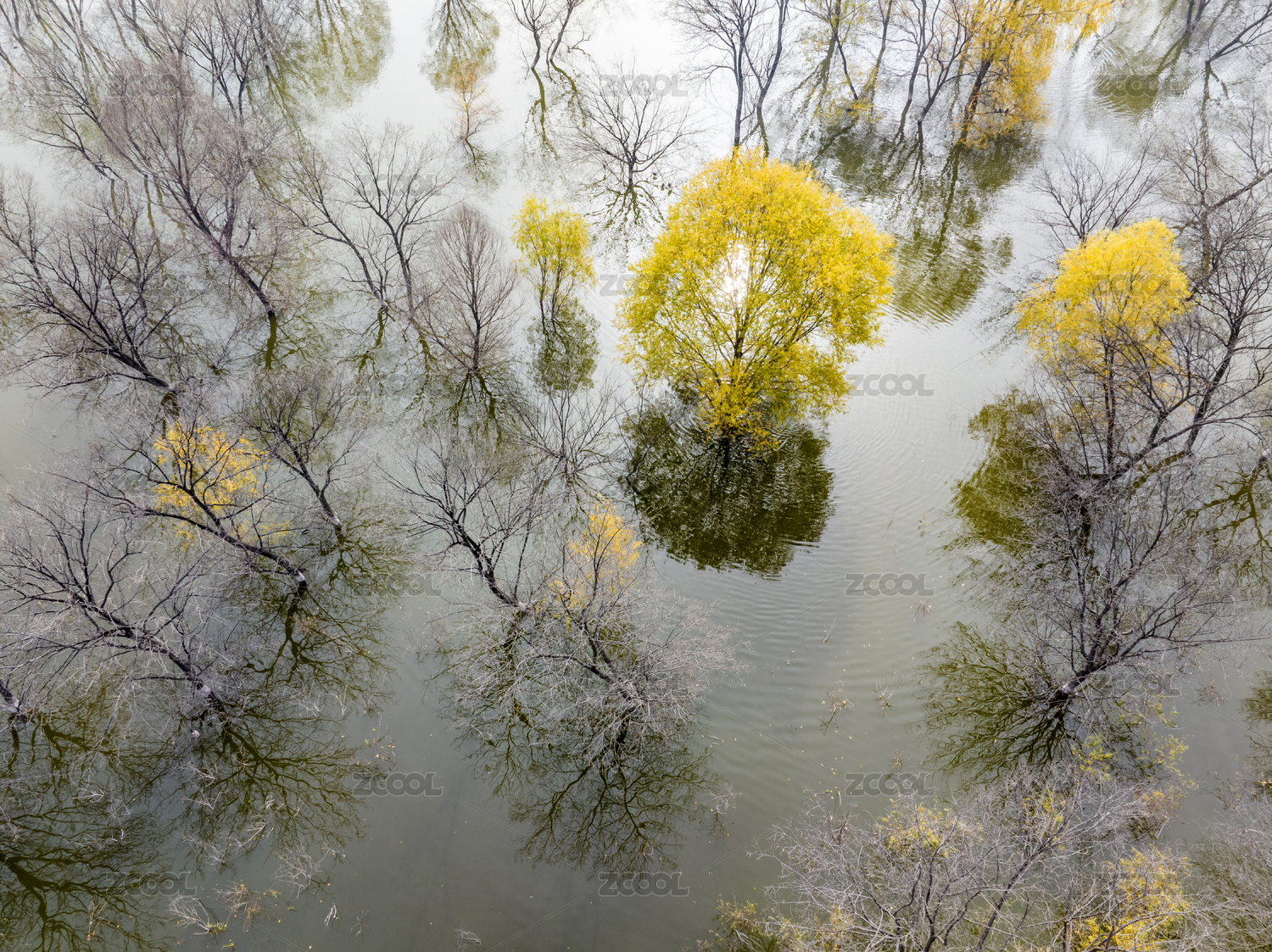 漳泽湖湿地公园,秋日,航拍,长治,深秋,树木,雾,反射,倒影,全景