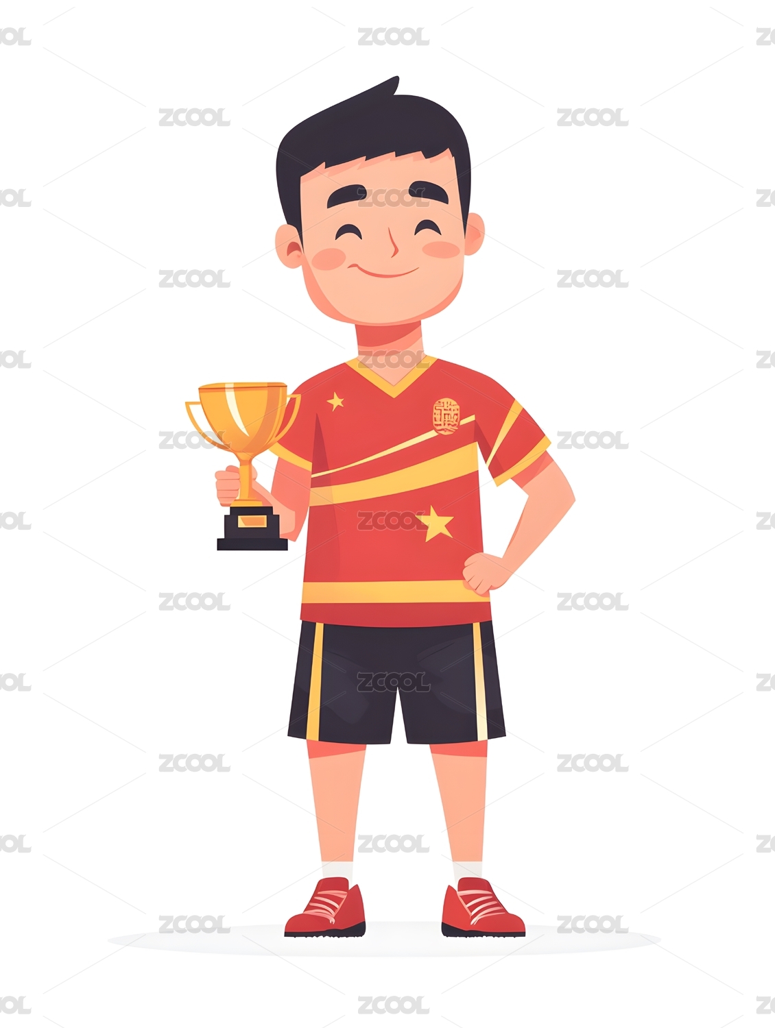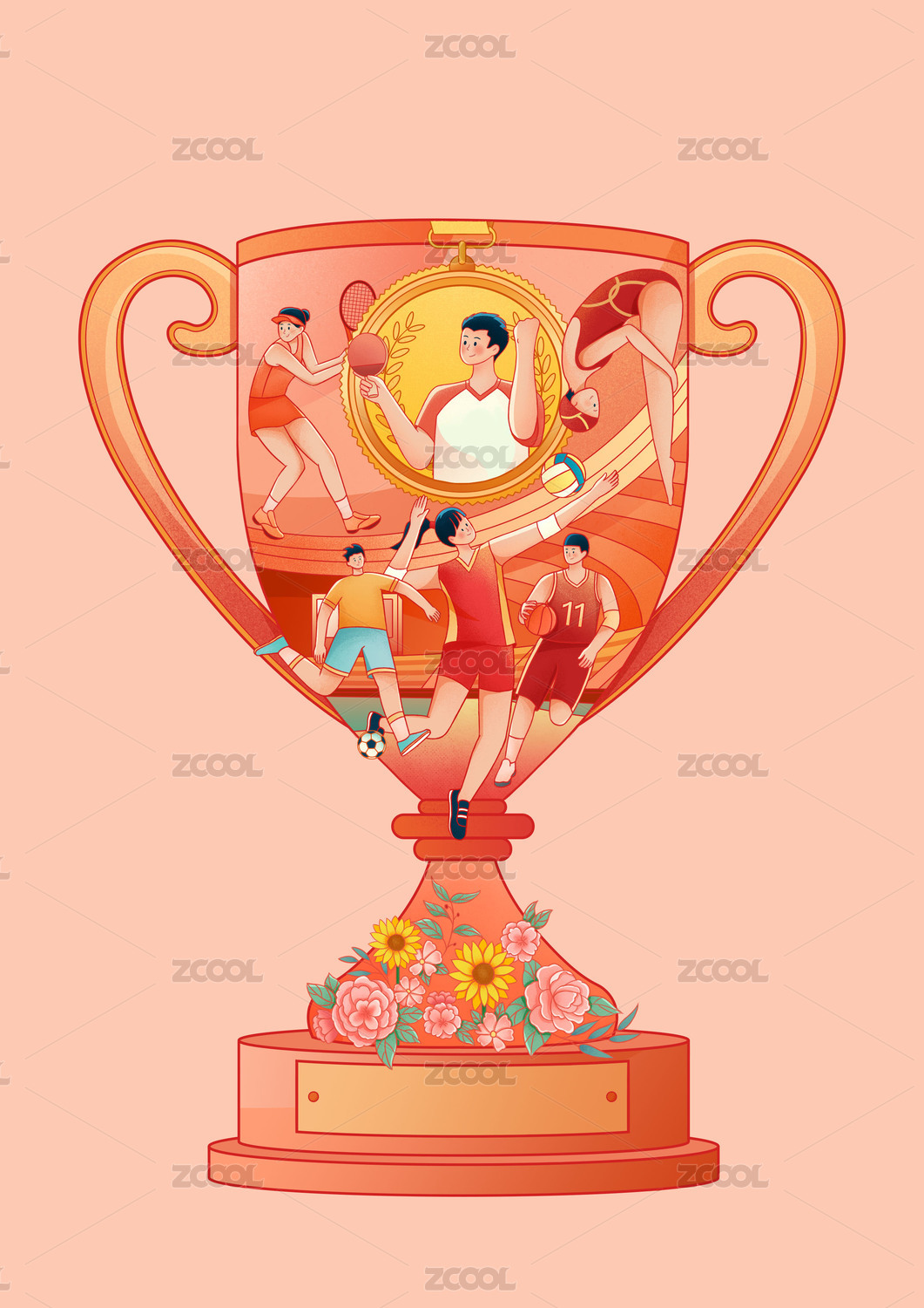 人物,插画,平面,扁平,色块,极简风,手绘,纯色背景,运动服,奖杯