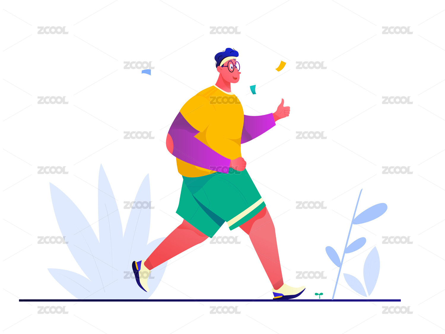 男子室外跑步积极锻炼减肥扁平潮流插画