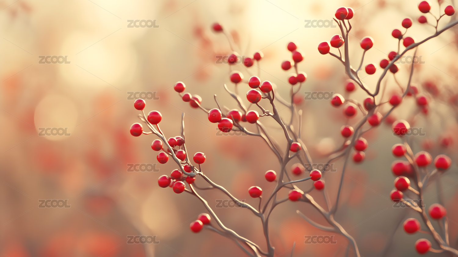 红色浆果与绿叶主题