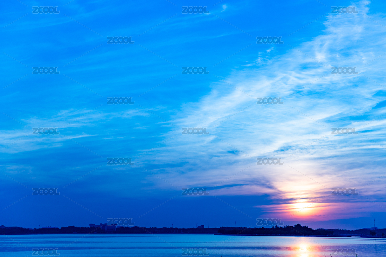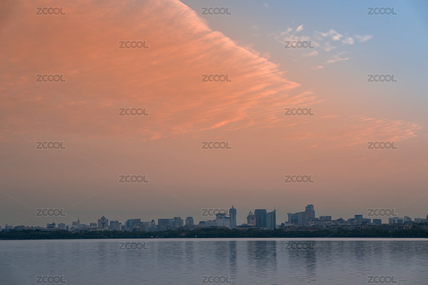 湖天一色的城市风光