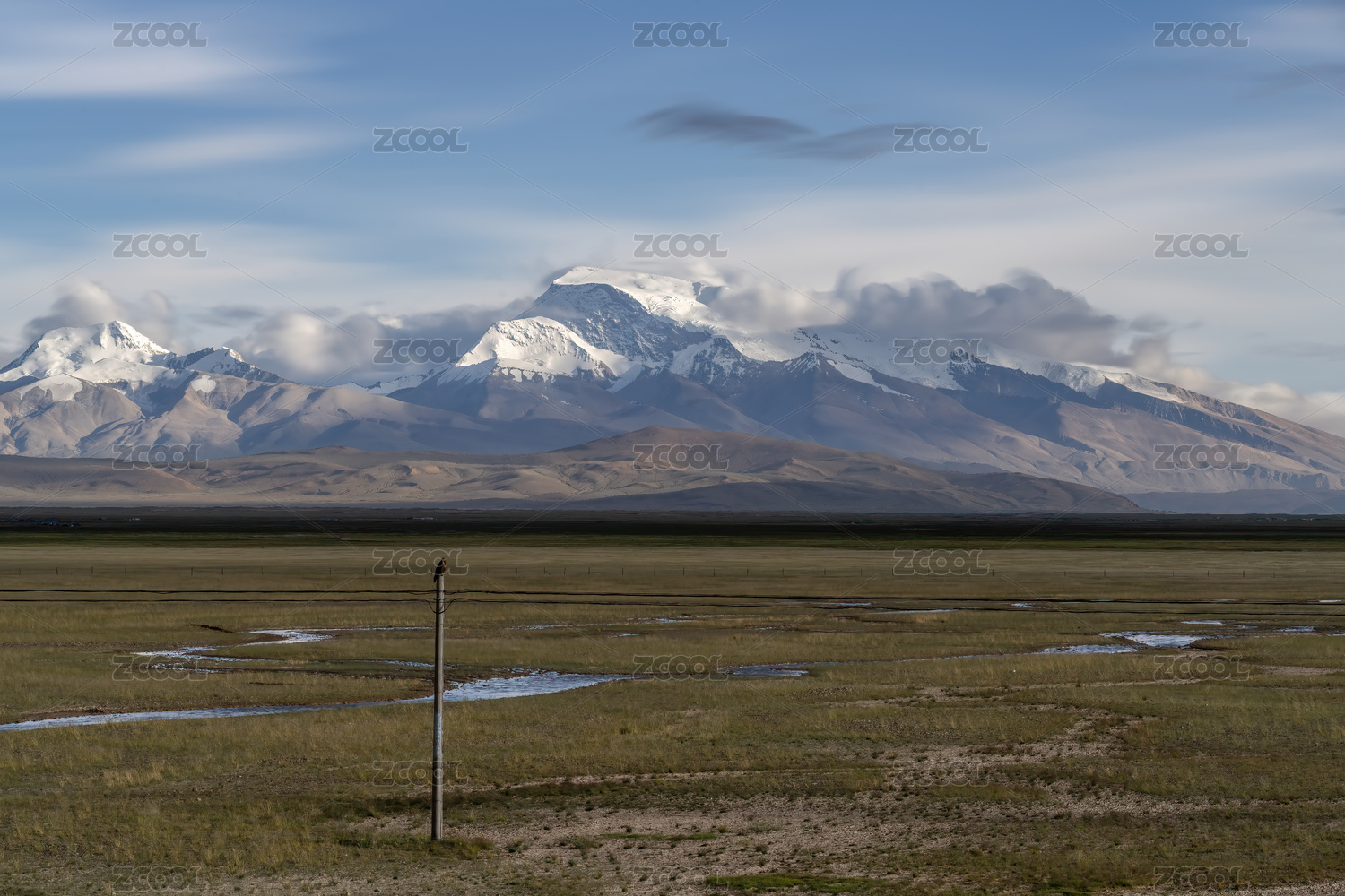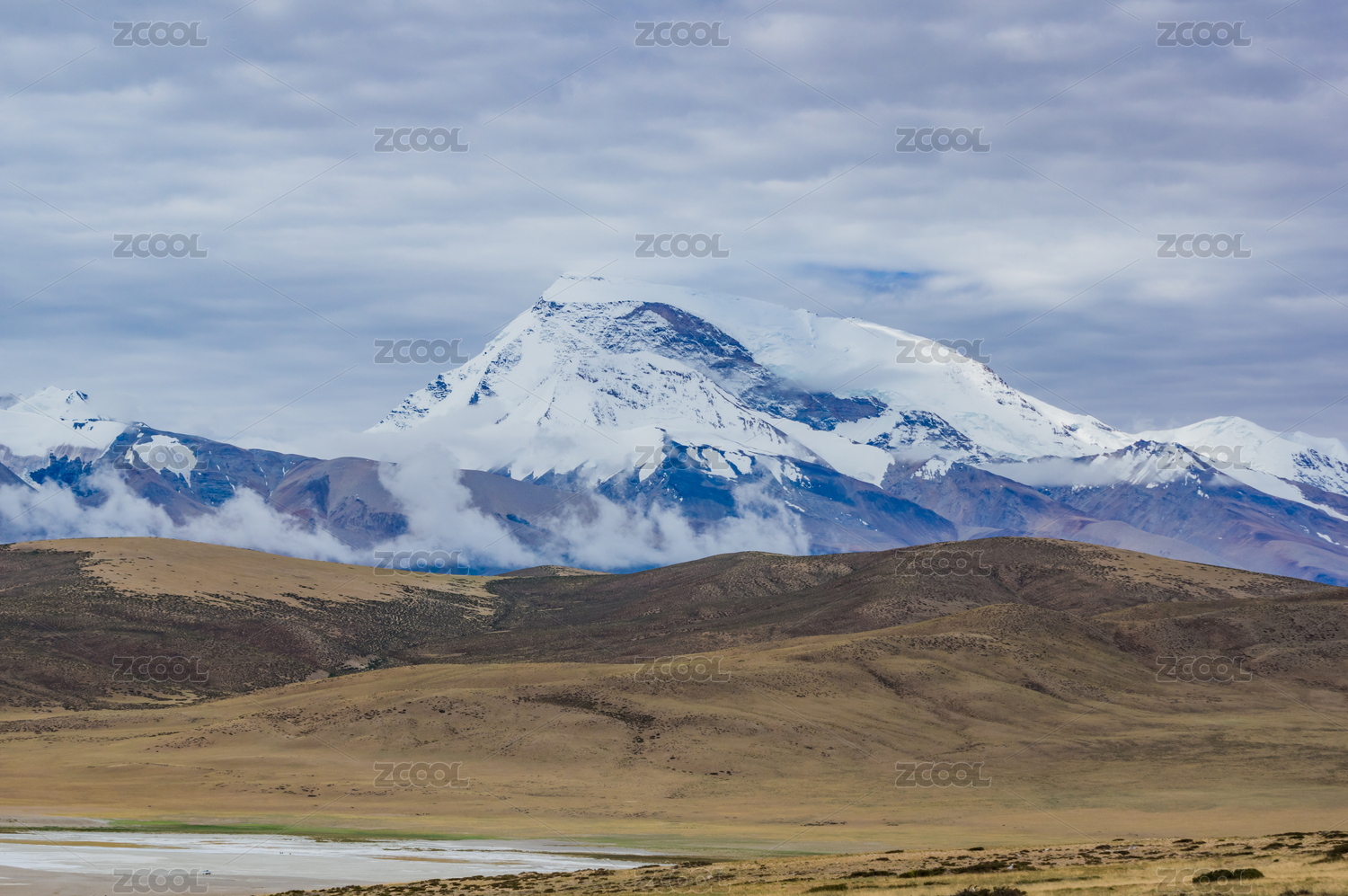 中国西藏蒙达拉山口,远处库拉冈日和卡热疆