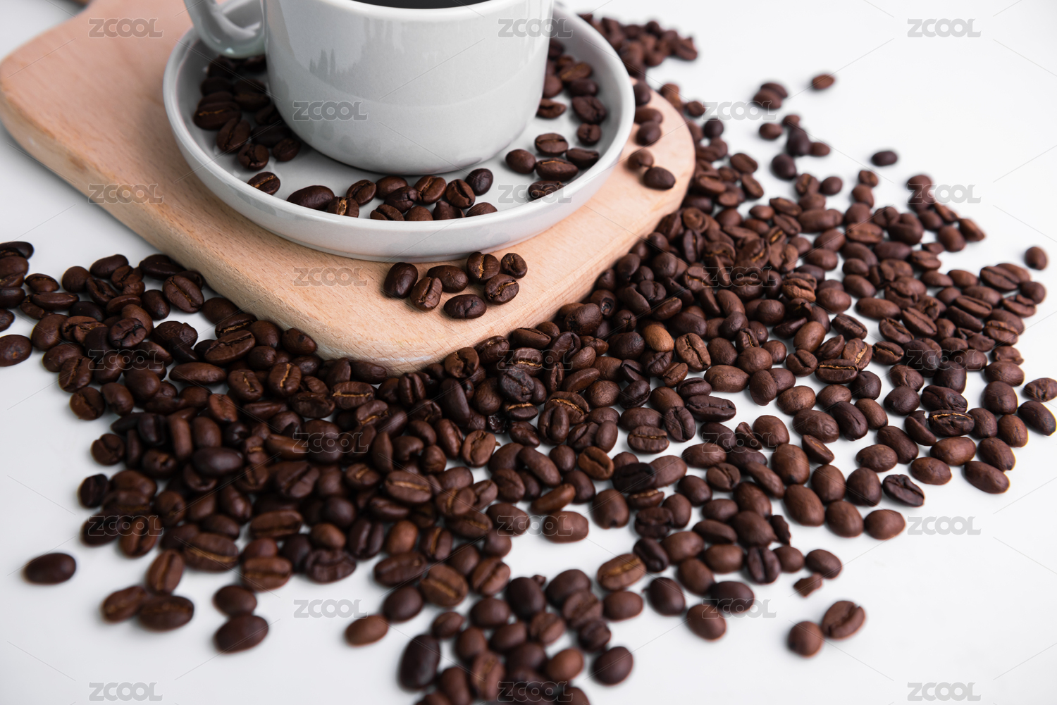 咖啡豆和咖啡杯