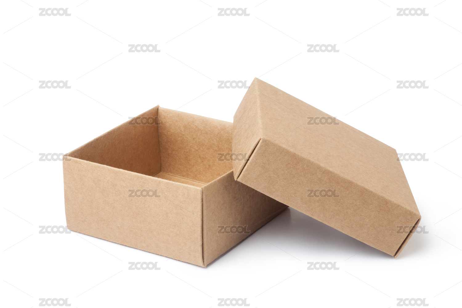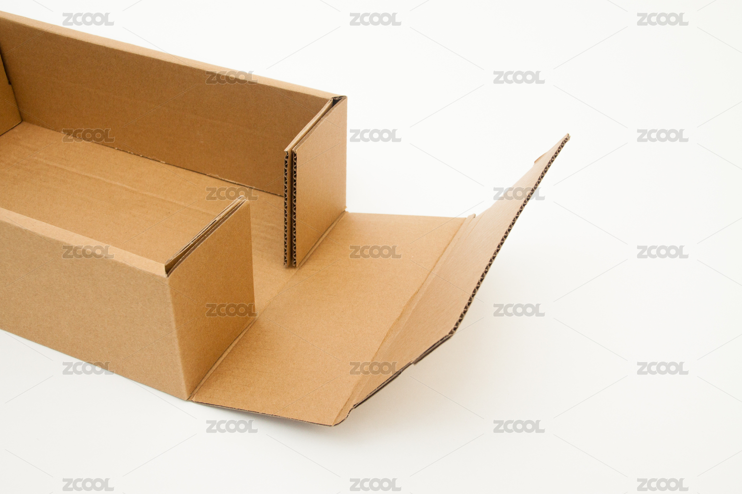 白底打开的牛皮纸箱特写
