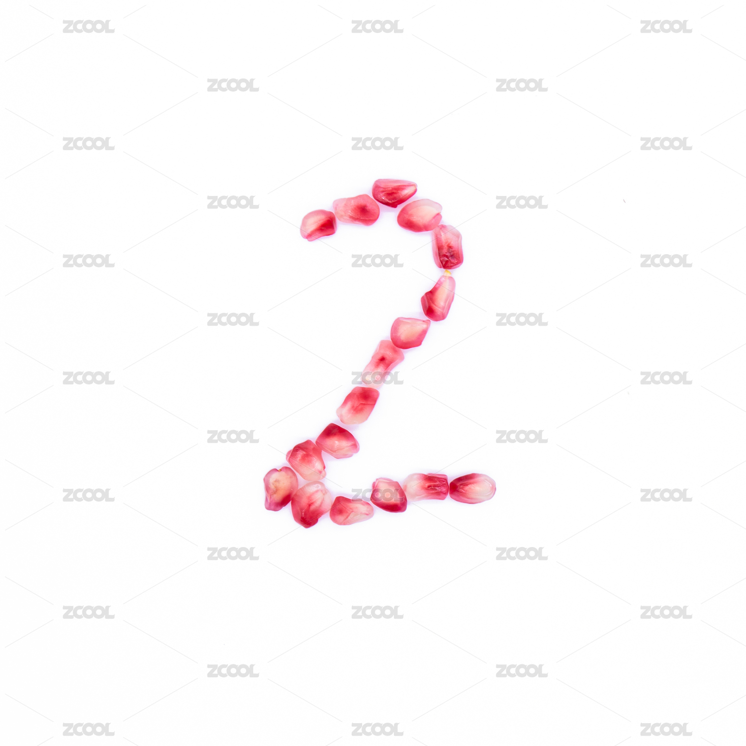 红色的突尼斯软籽石榴籽摆成阿拉伯数字2