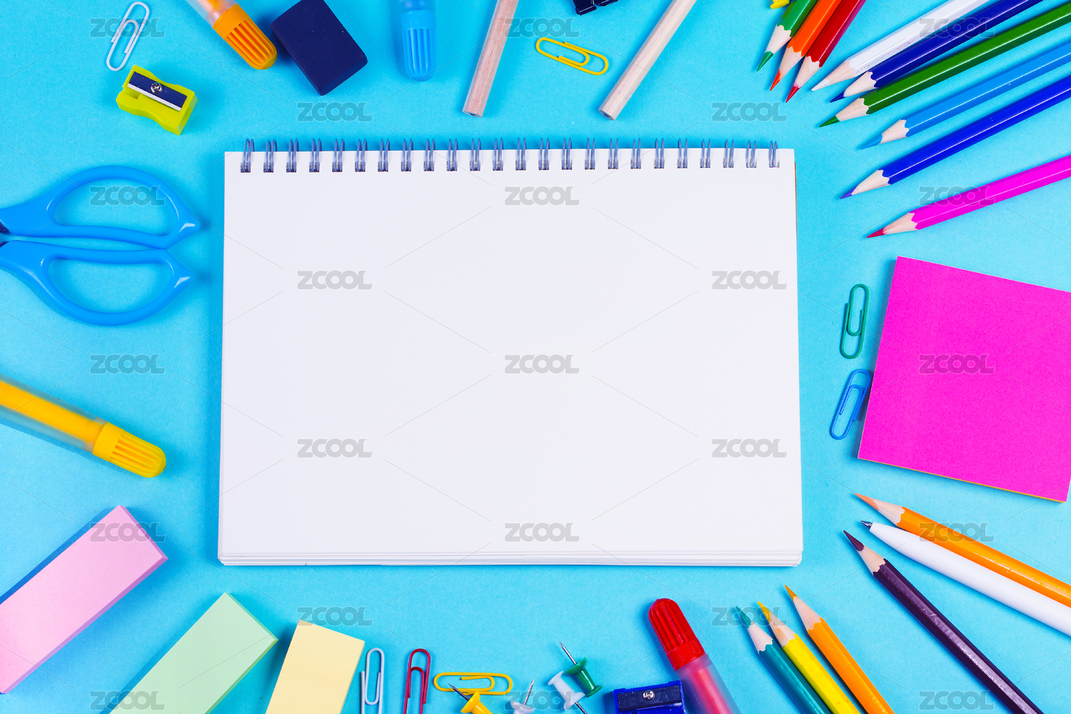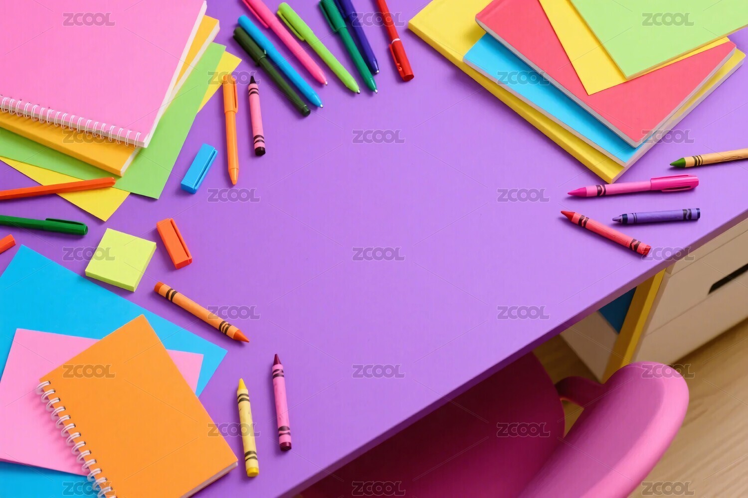彩色学习用品桌面图