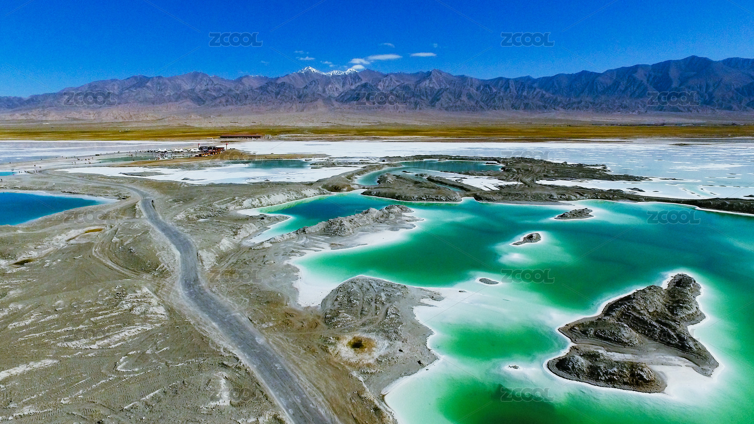 青海省柴达木盆地大柴旦翡翠湖航拍图片