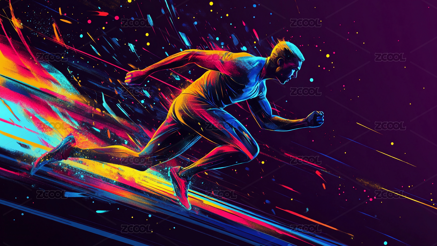 奔跑者在抽象色彩背景中跃动充满活力和动感