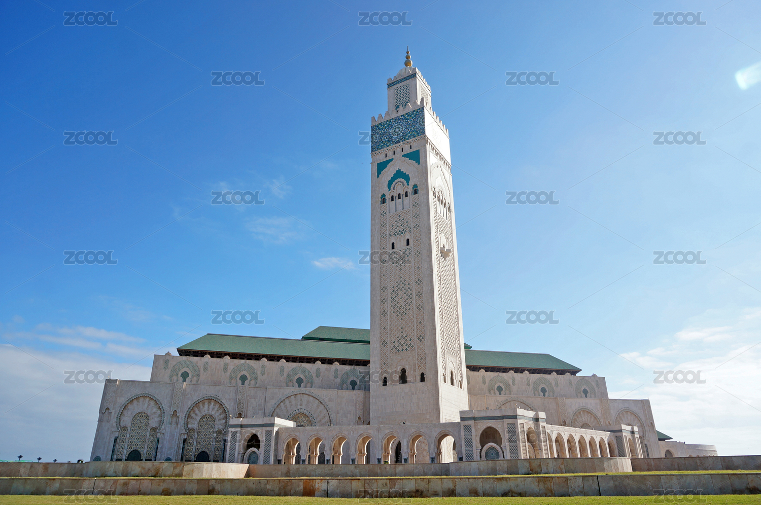摩洛哥卡萨布兰卡哈桑清真寺夏季晴天上午
