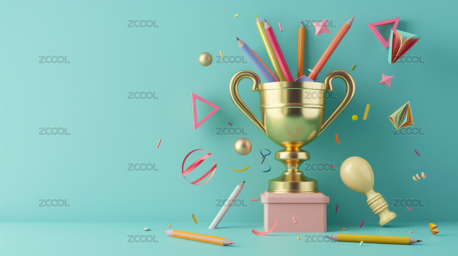 获胜,竞争,黄金,金属,庆祝,知识,三维,学习,AIGC202402,布置