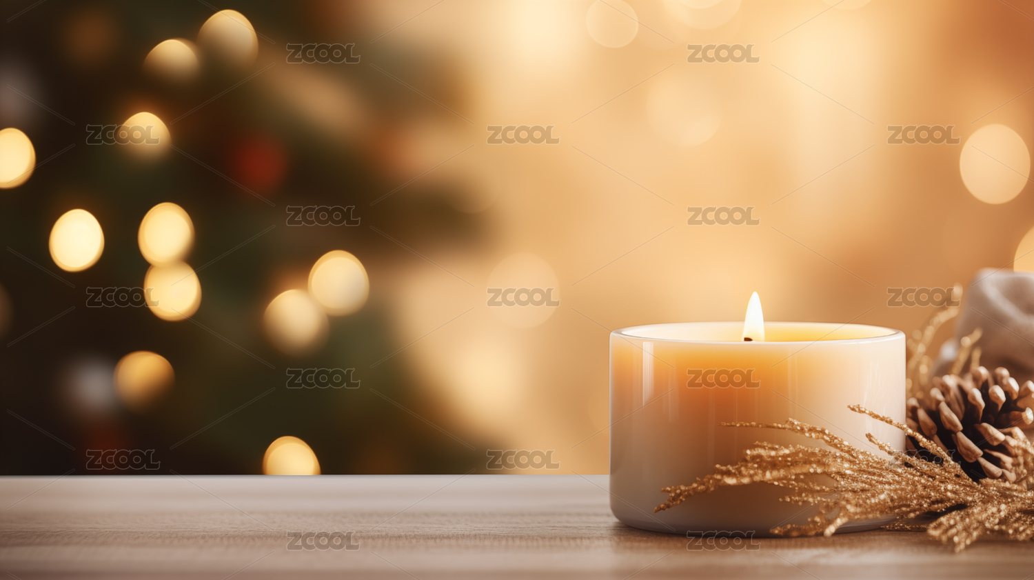 棕色背景桌子上的蜡烛和圣诞装饰品高清图片
