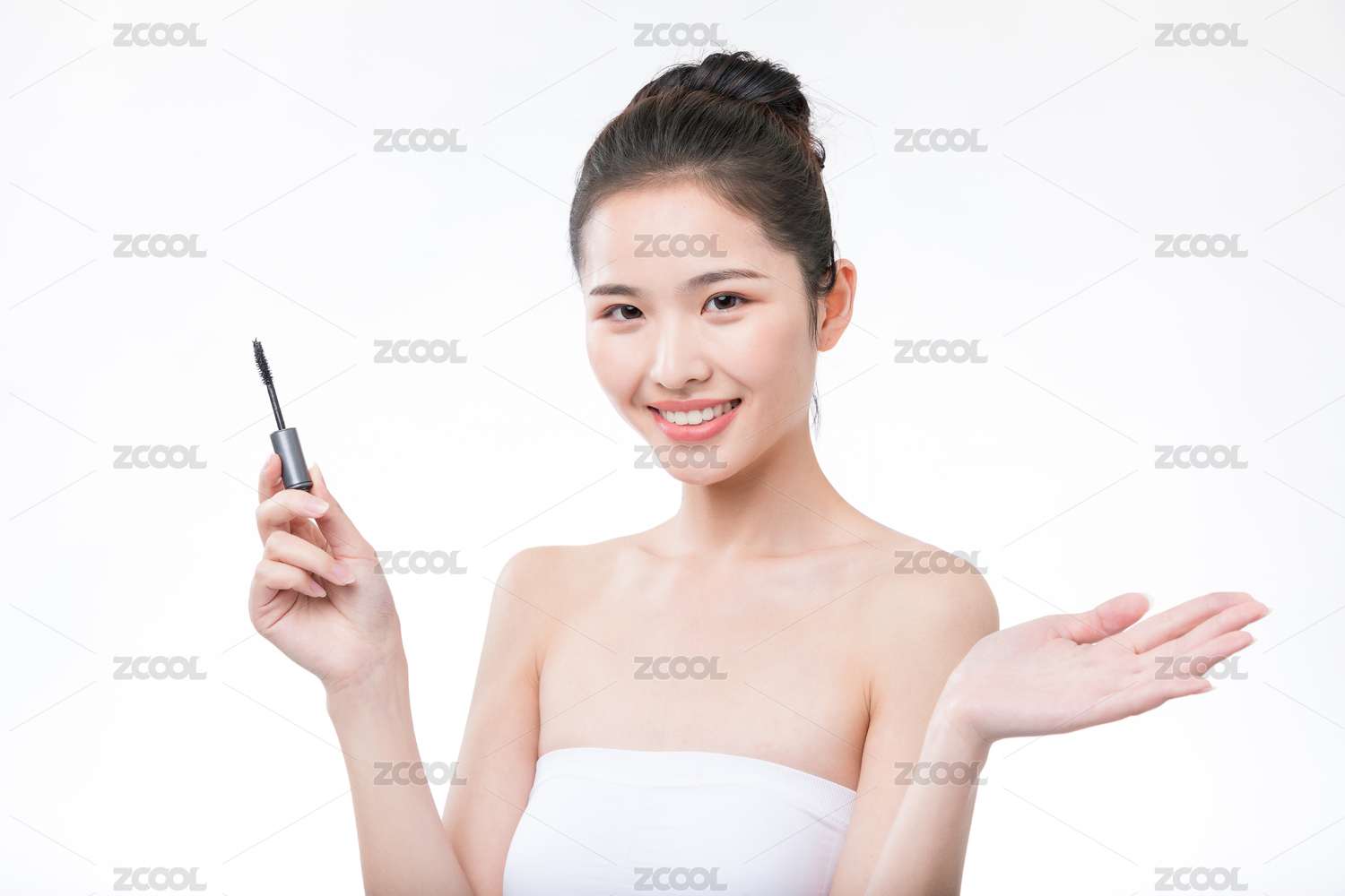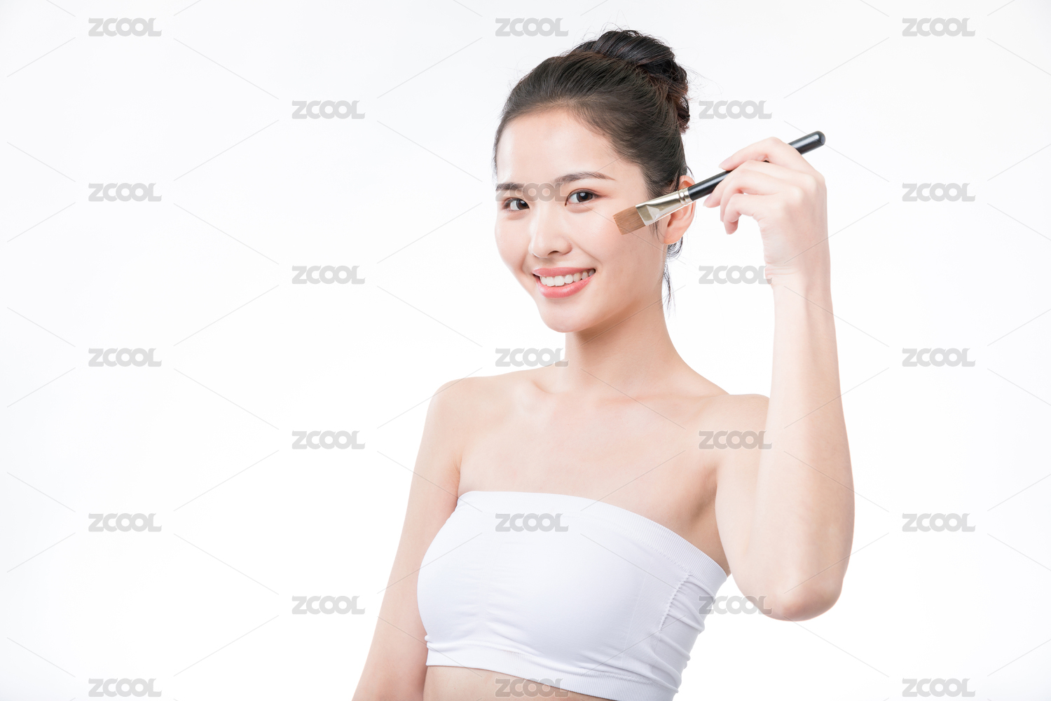 白色背景里正在化妆的亚洲美女