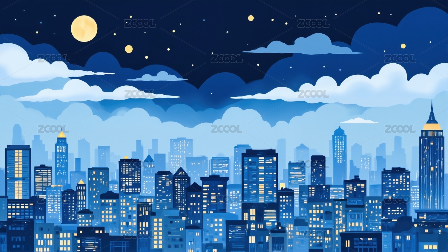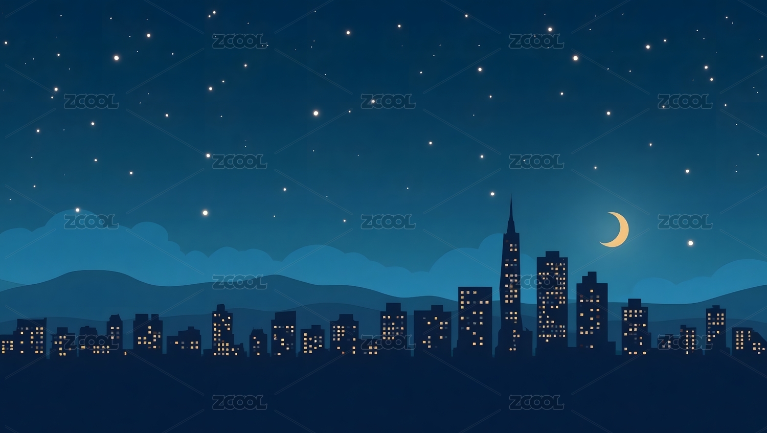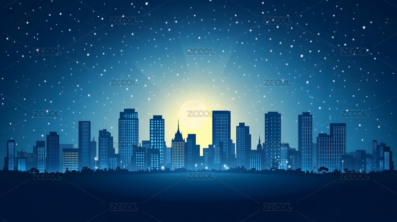 夜晚城市剪影与星空