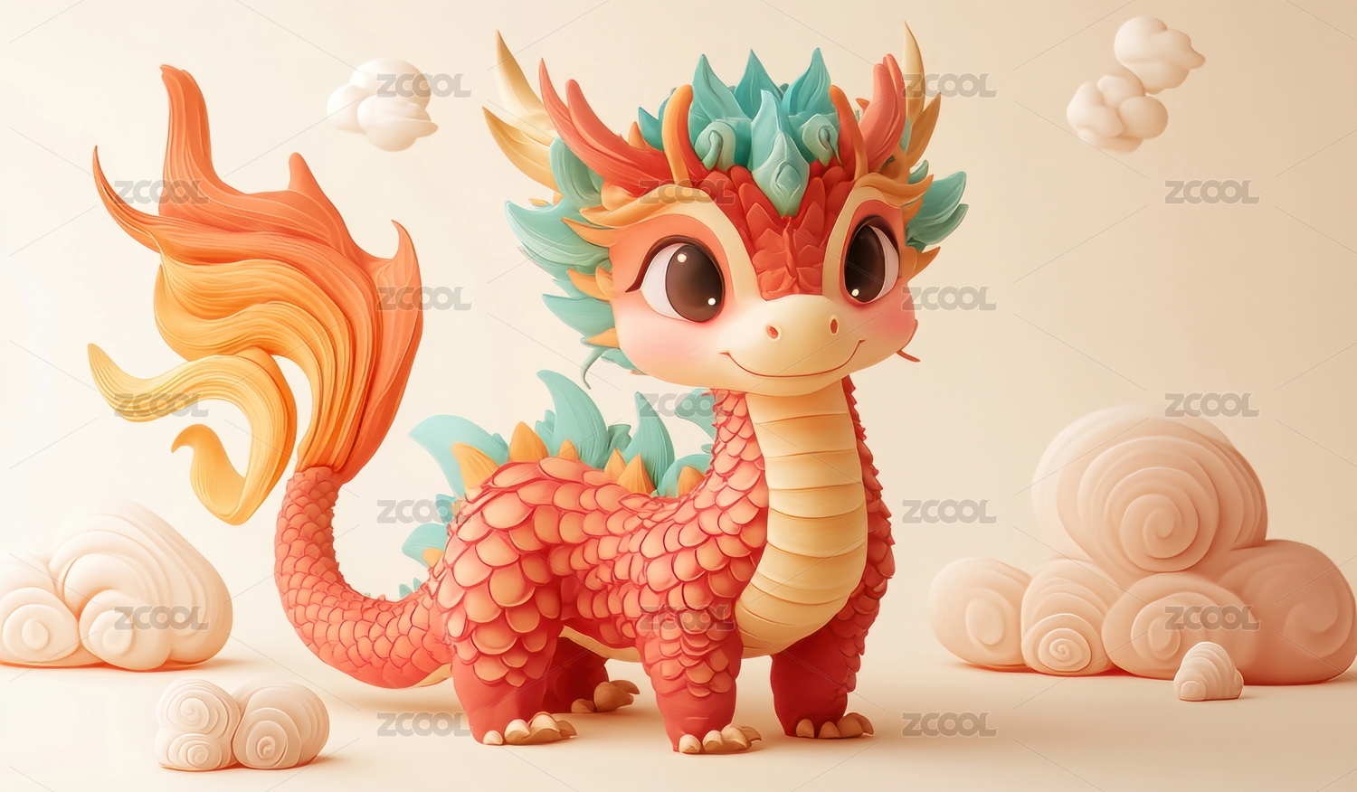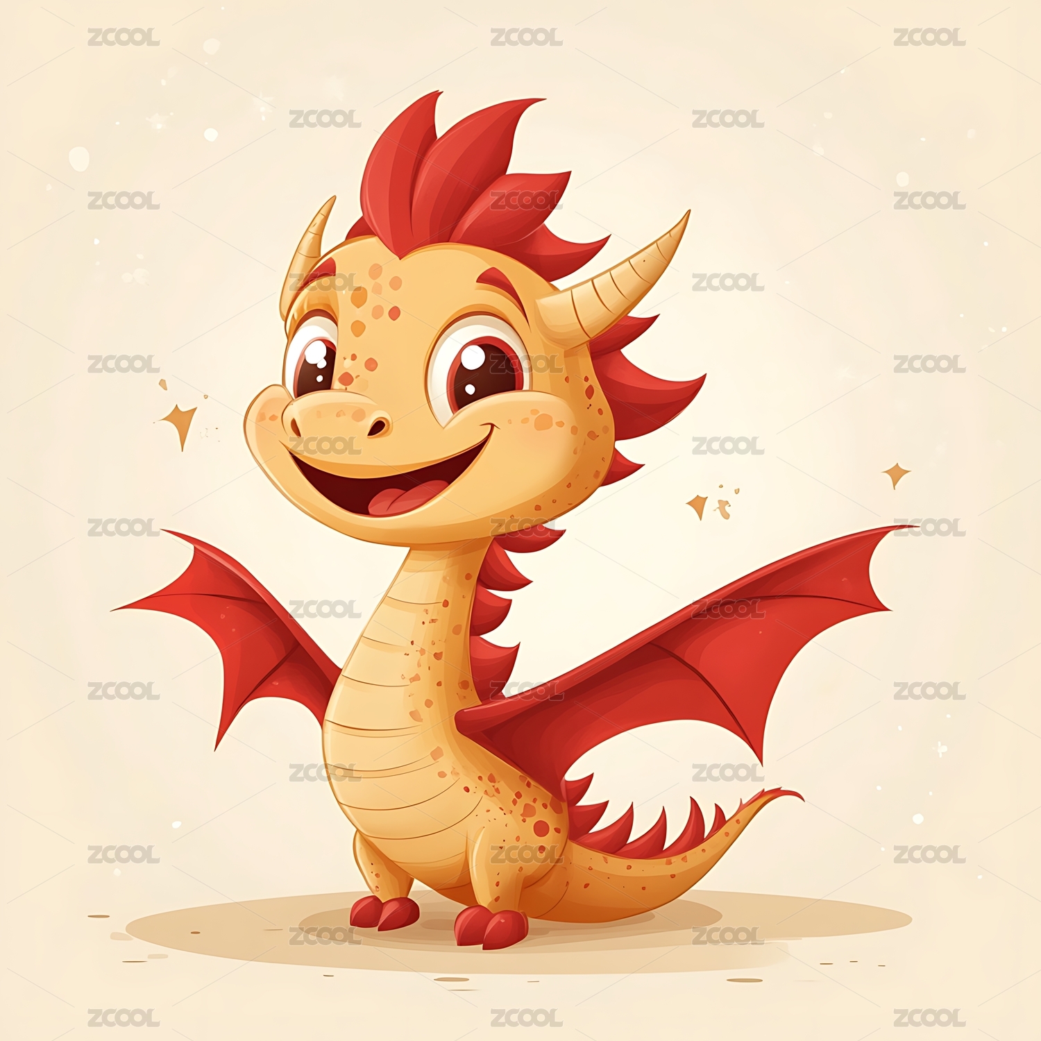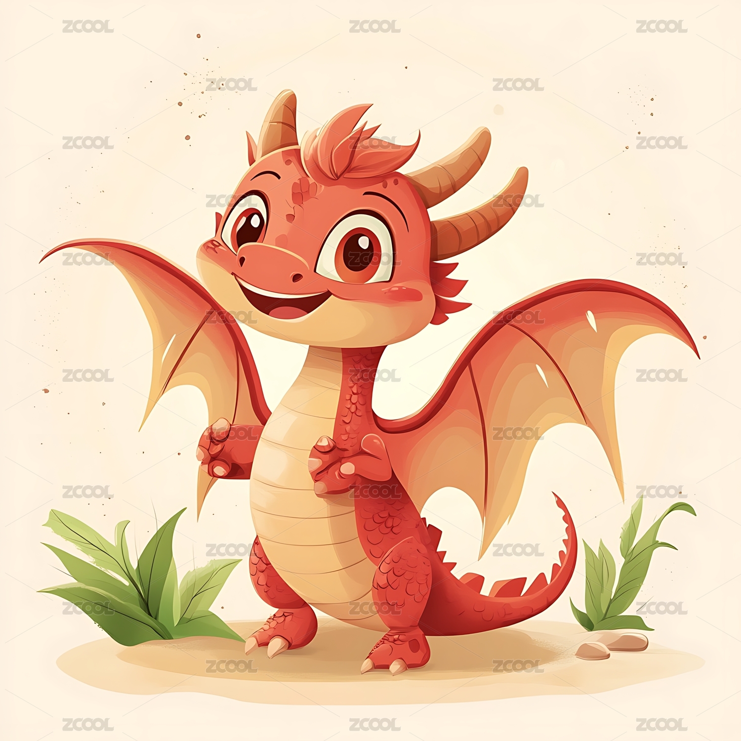 龙,可爱,卡通,彩色,微笑,花纹,尾巴,角,翅膀,粉红色