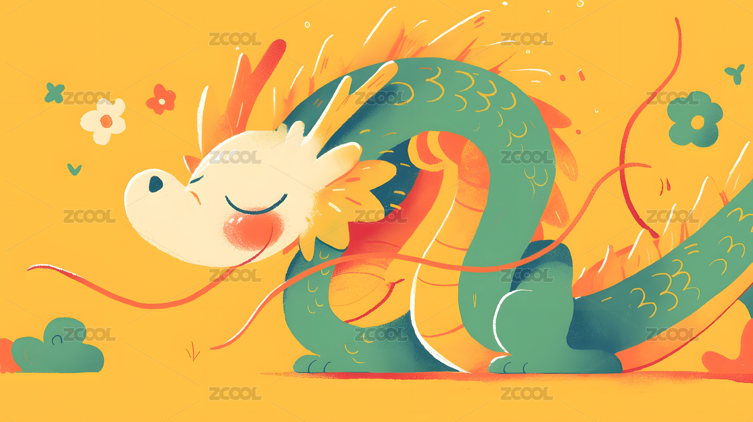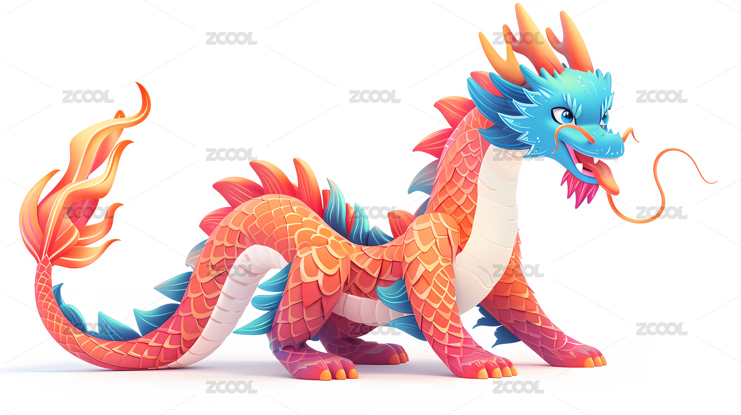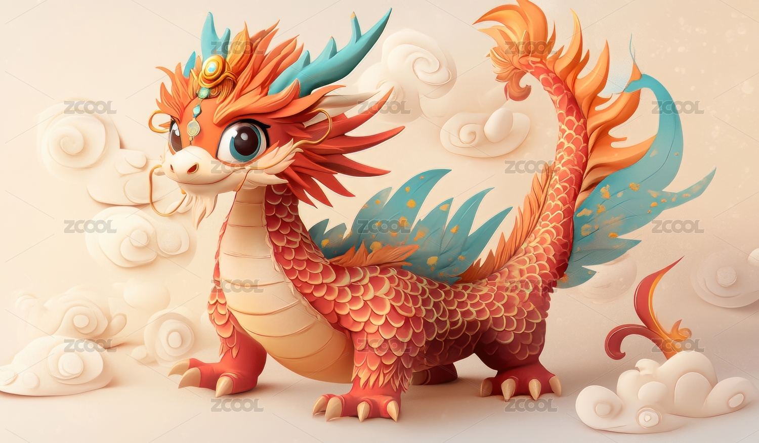 龙,可爱,卡通,彩色,微笑,花纹,尾巴,角,翅膀,粉红色