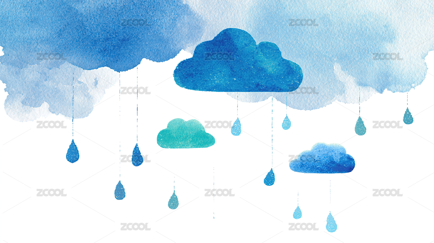 水彩风格的云朵与雨滴