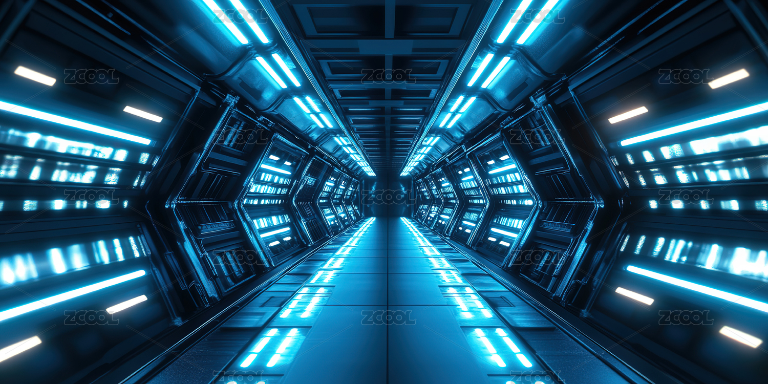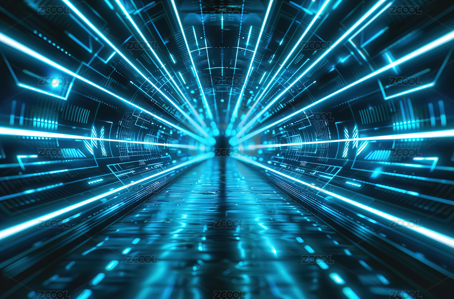 黑暗隧道与发光照明,抽象技术速度概念三维