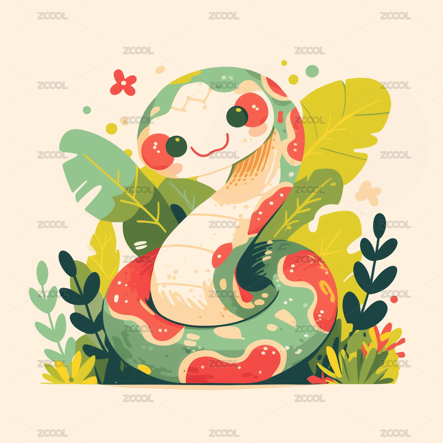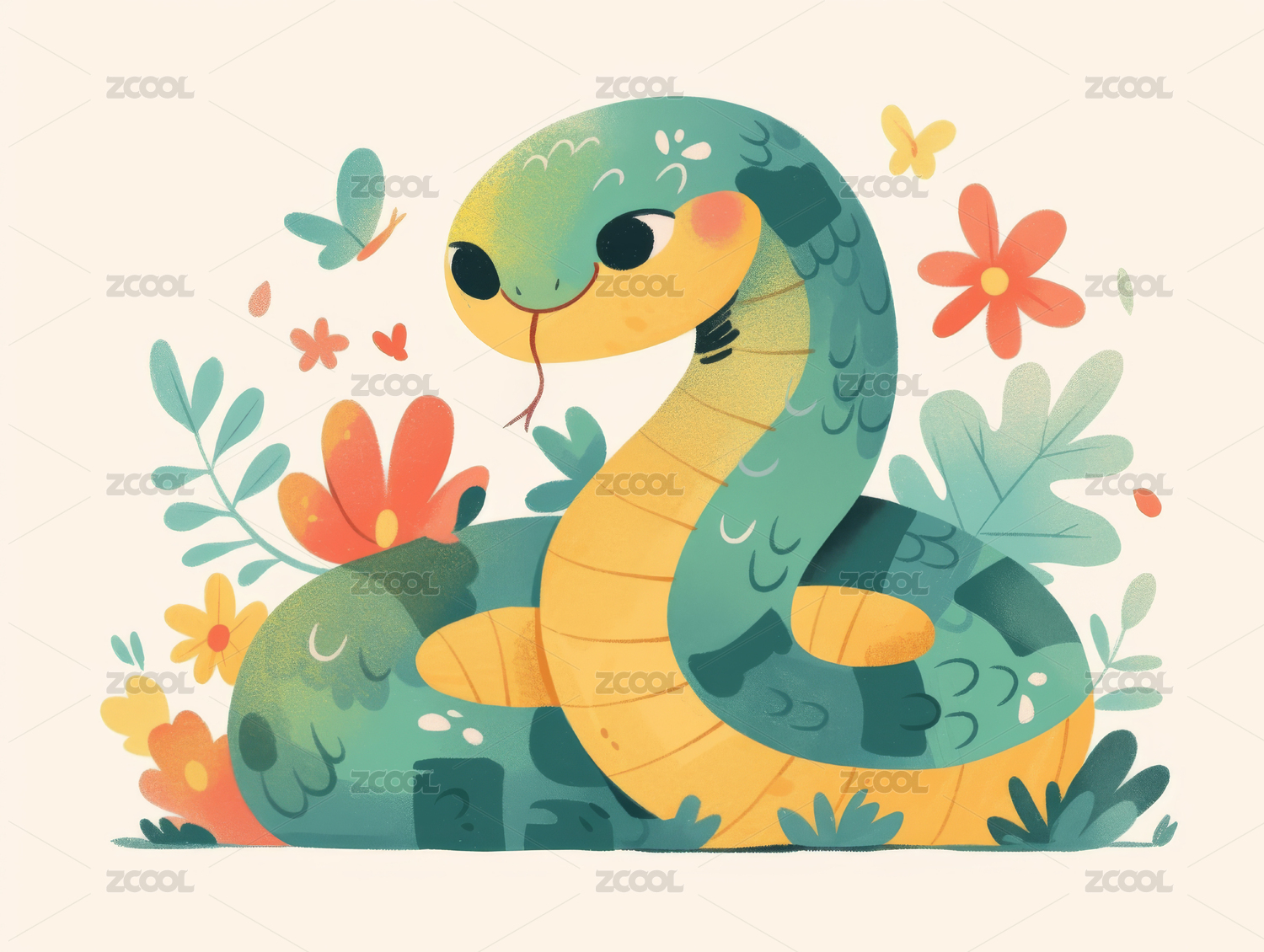可爱儿童插画风格生肖蛇儿童涂鸦