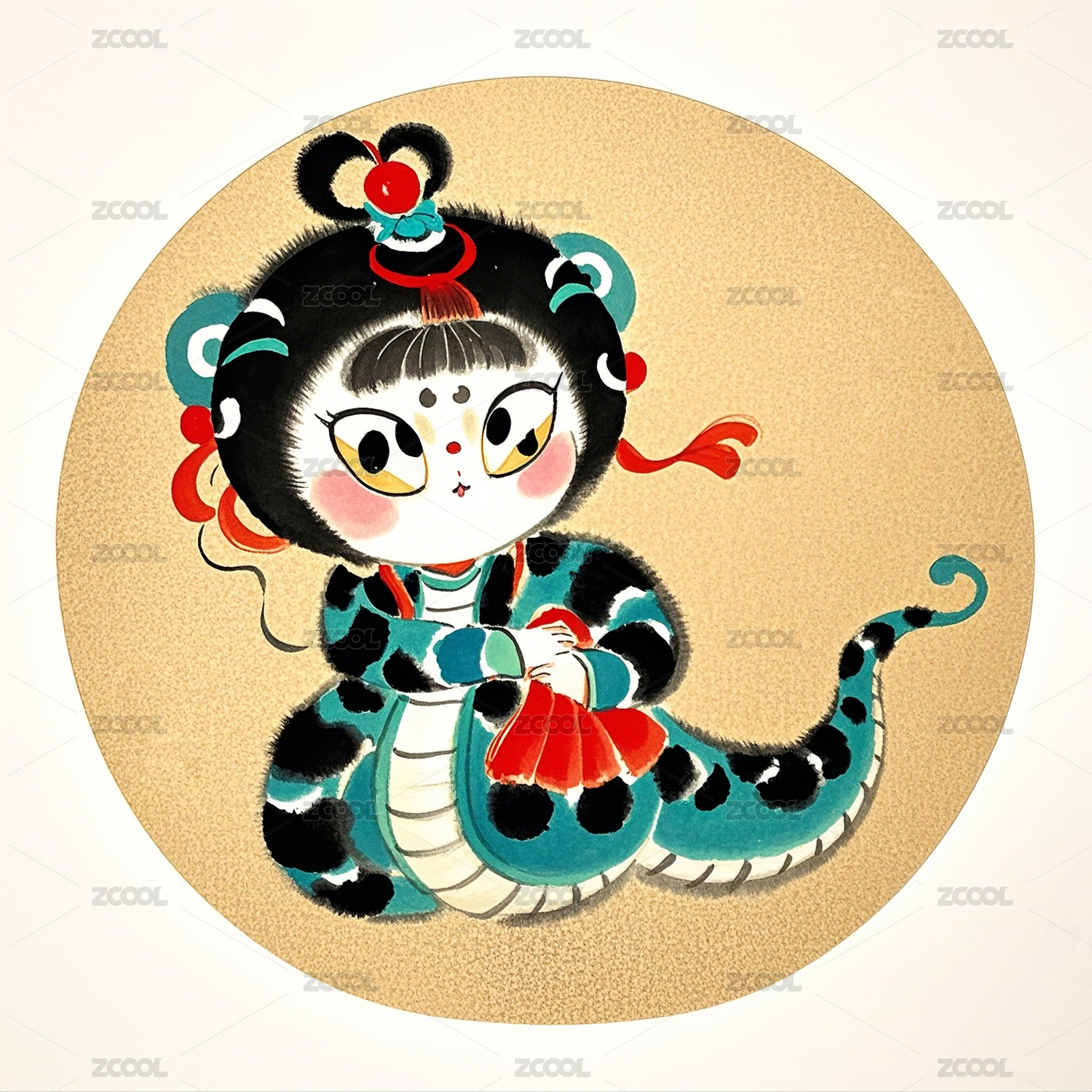 中国画蛇妖女娃娃