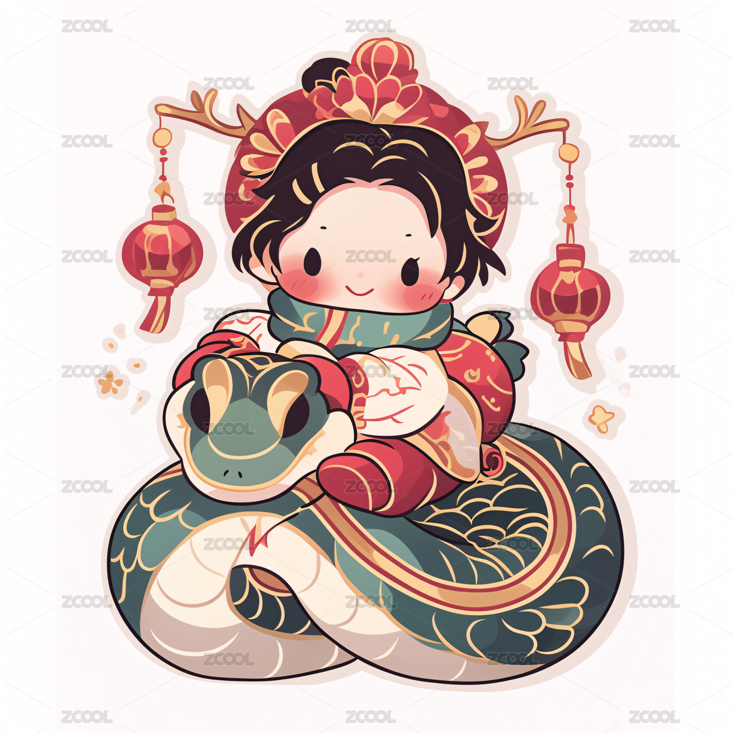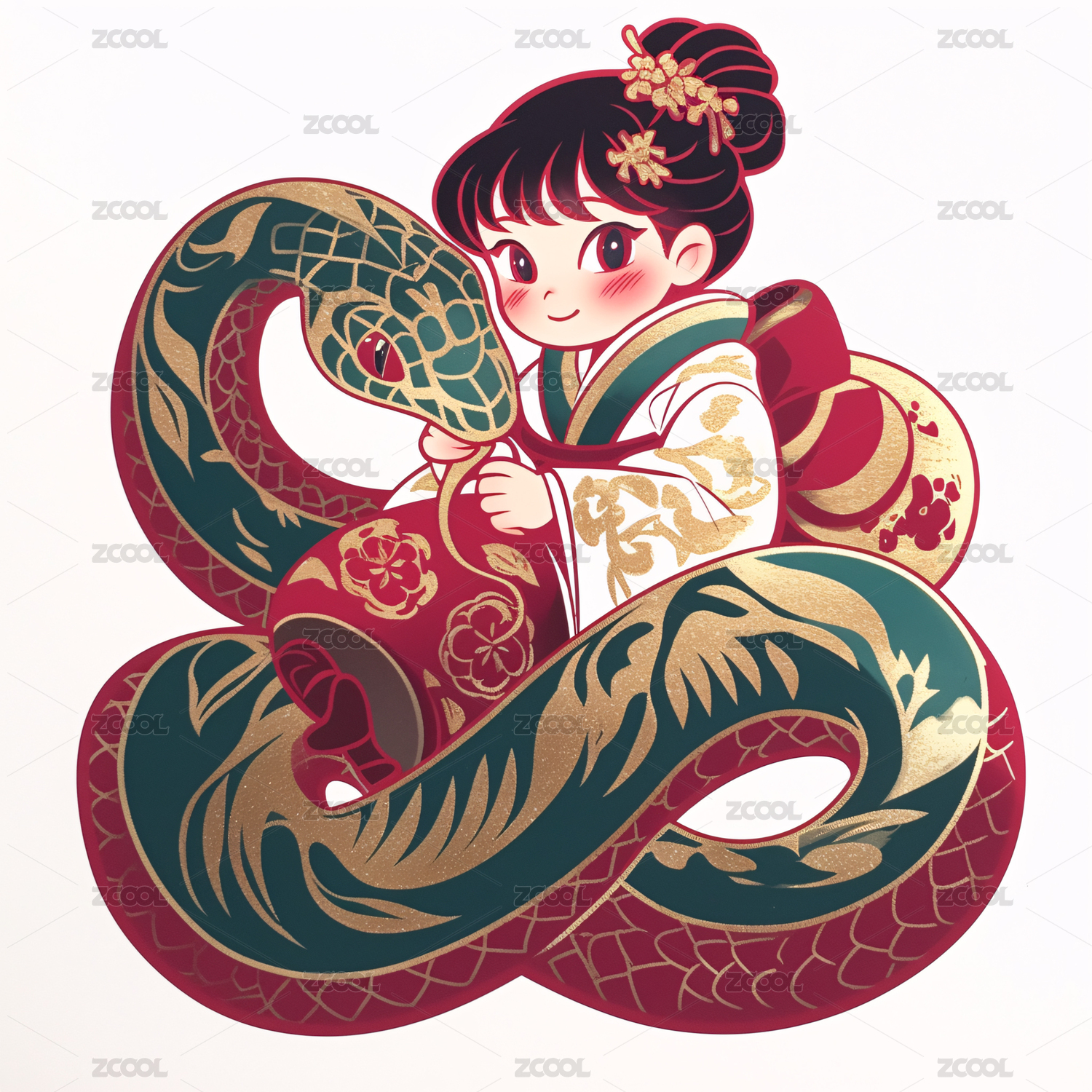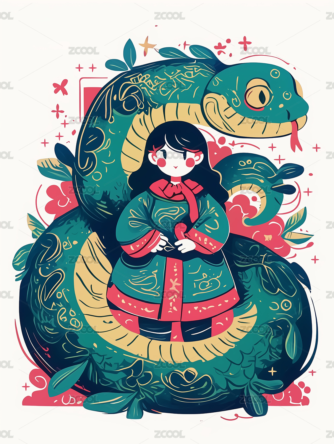 中国新年生肖2025蛇年女孩传统花纹