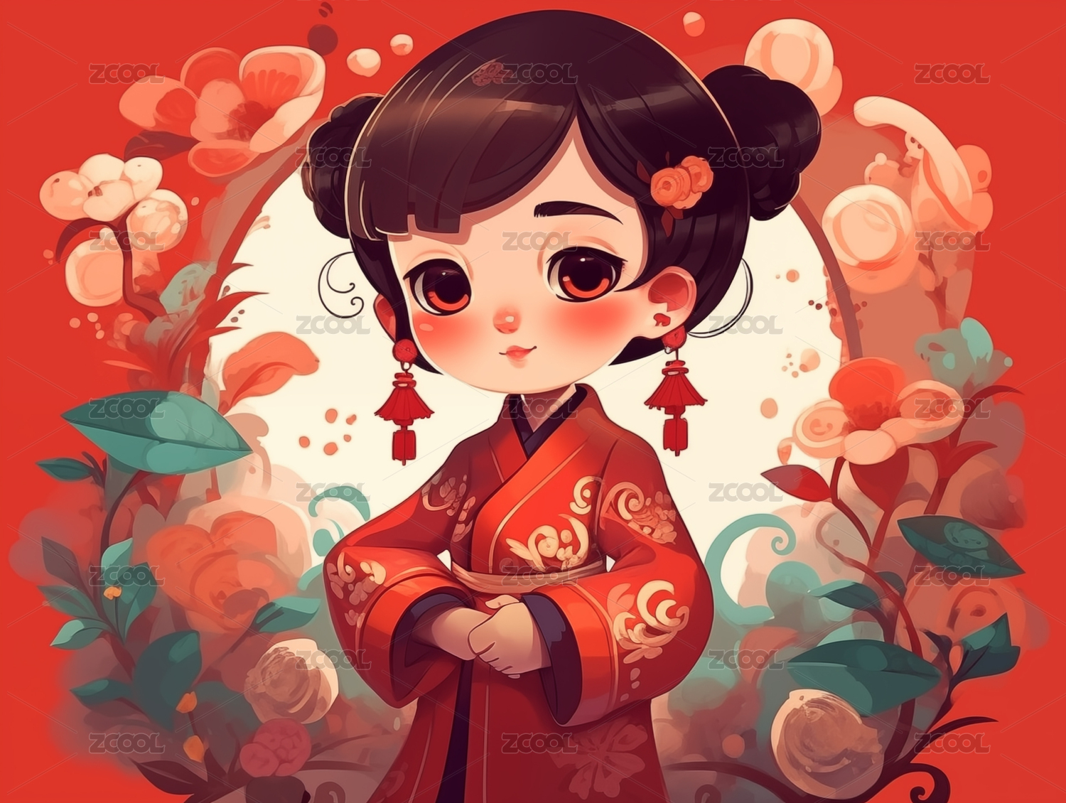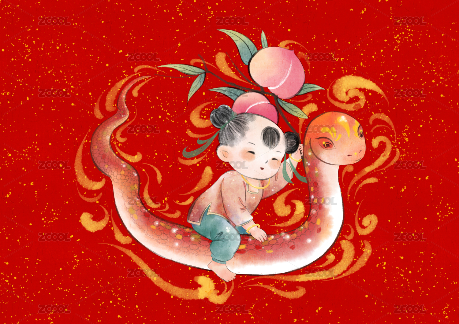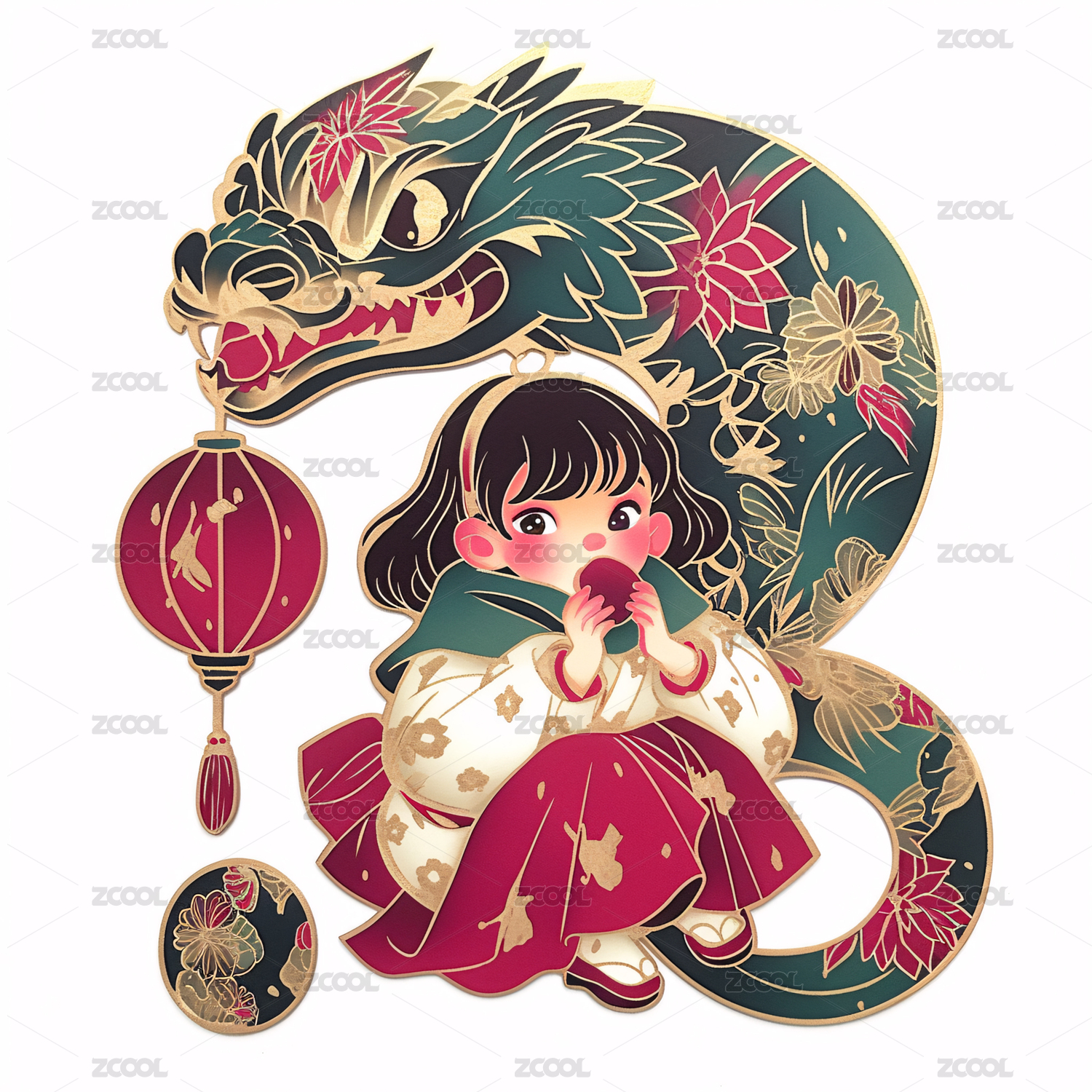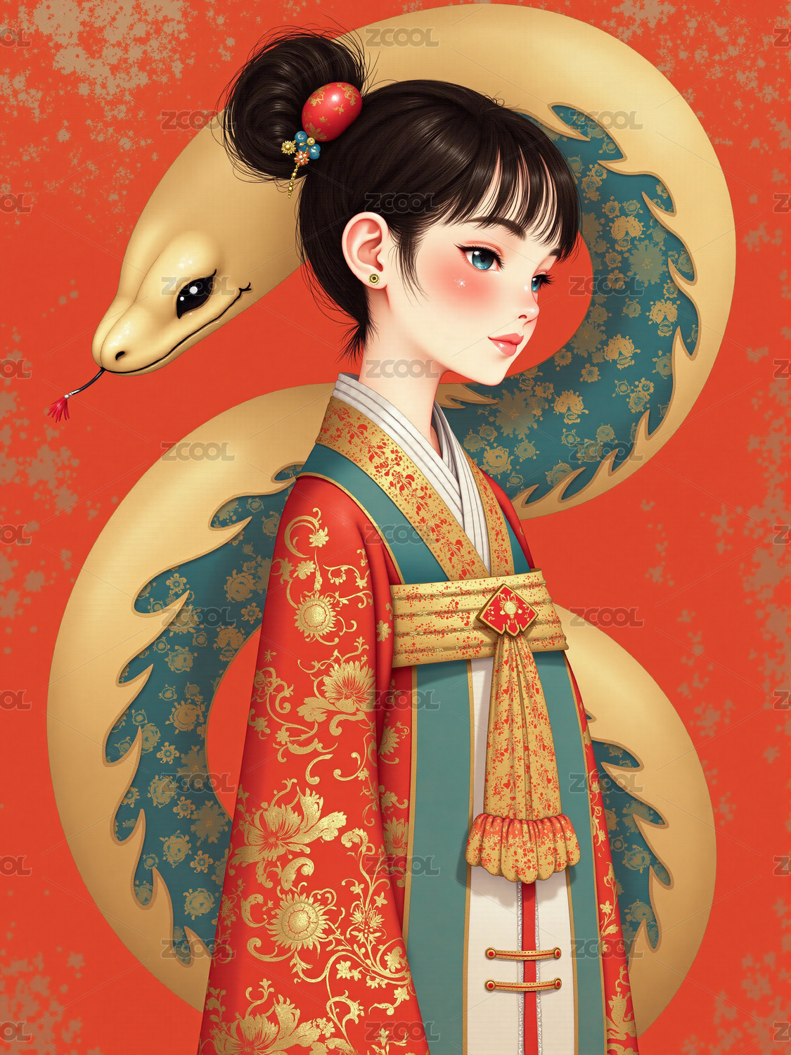 中国新年生肖2025蛇年女孩传统花纹