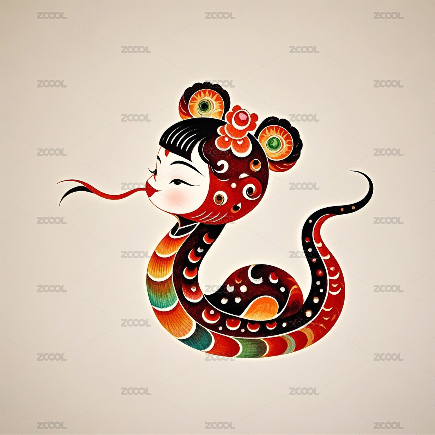 皮影风格复古的蛇宝宝图案