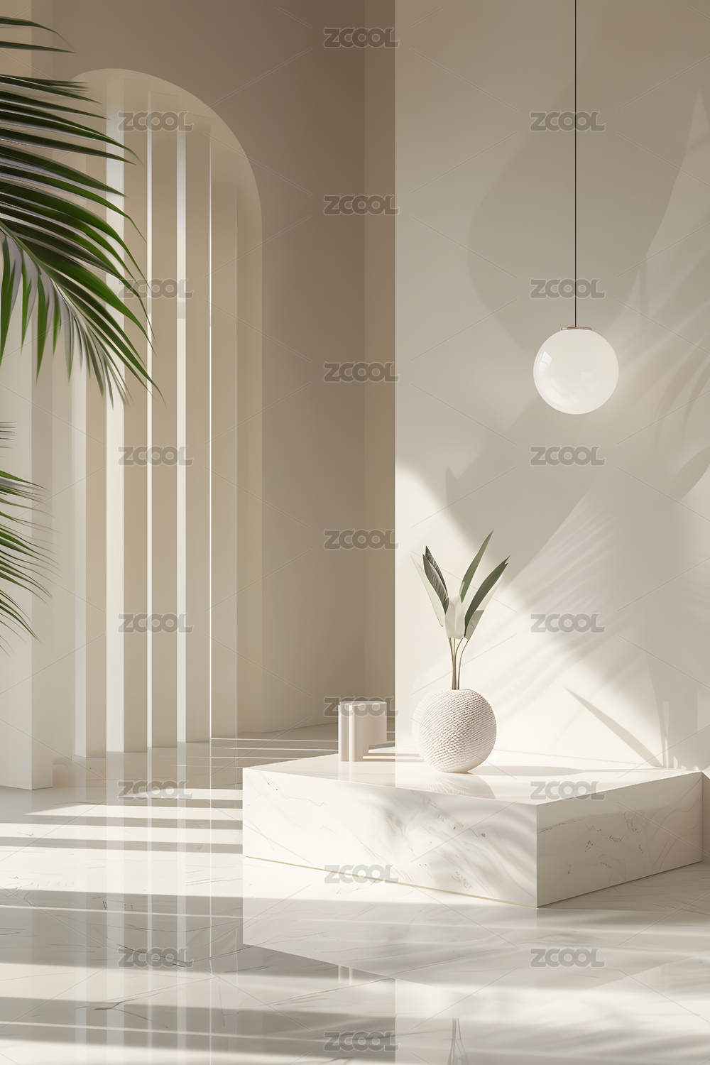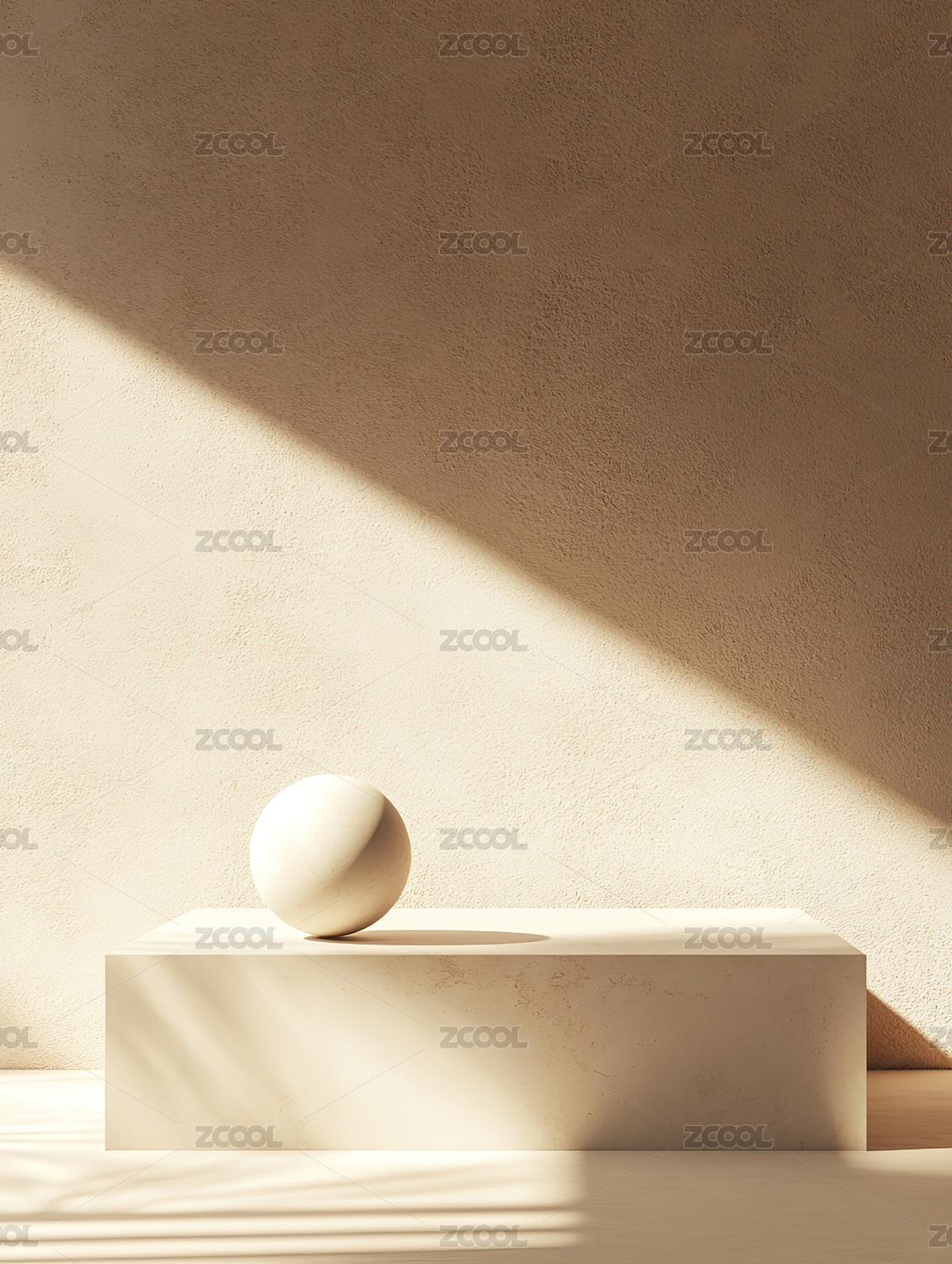 橙色空间中的白色圆台与小球
