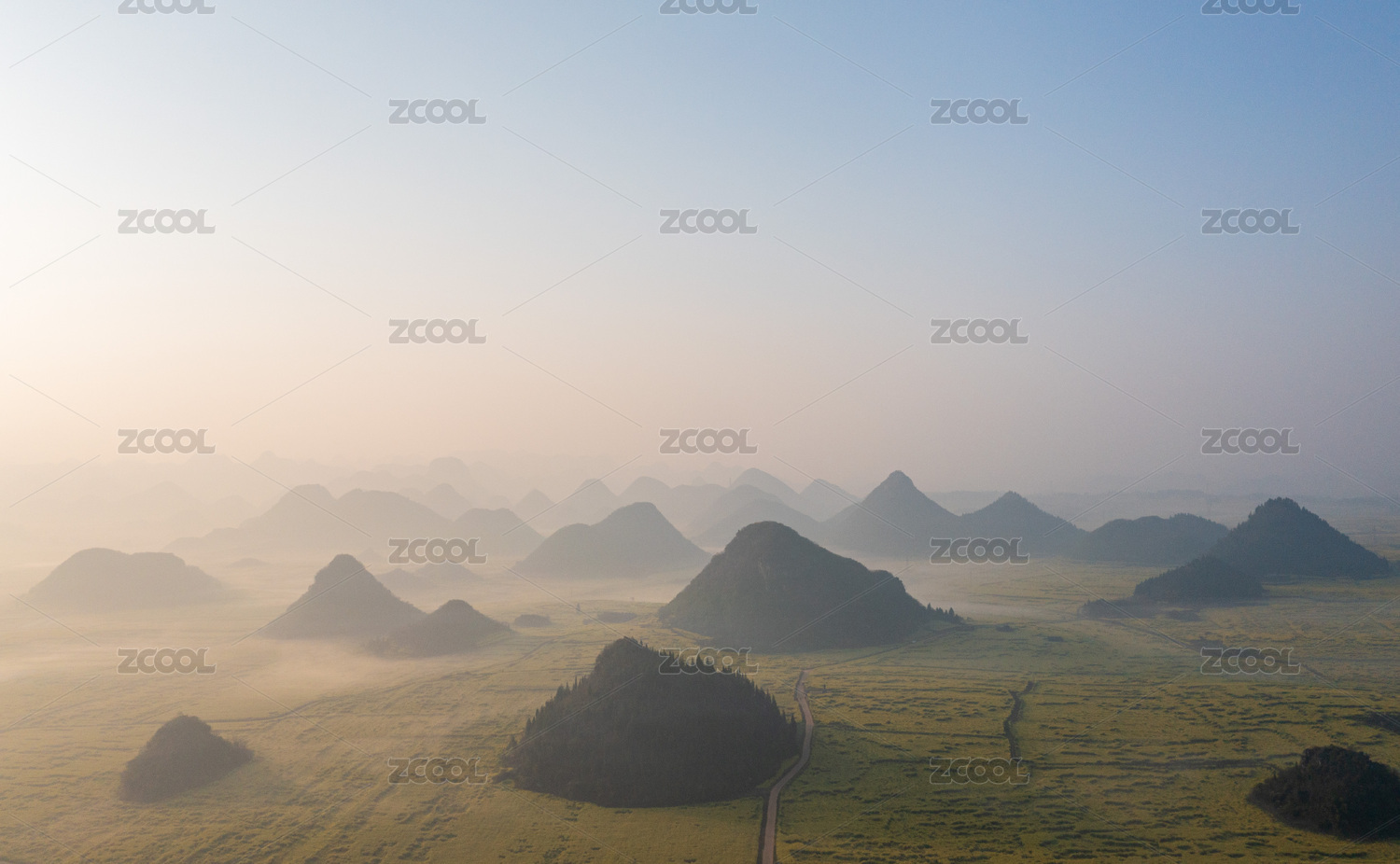 中国云南省曲靖地区罗平县金鸡峰丛早晨风光