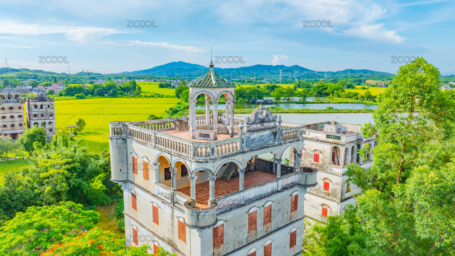 蓝天,晴天,天际线,树,绿色,阳光,侨乡,近现代,村落,乡村