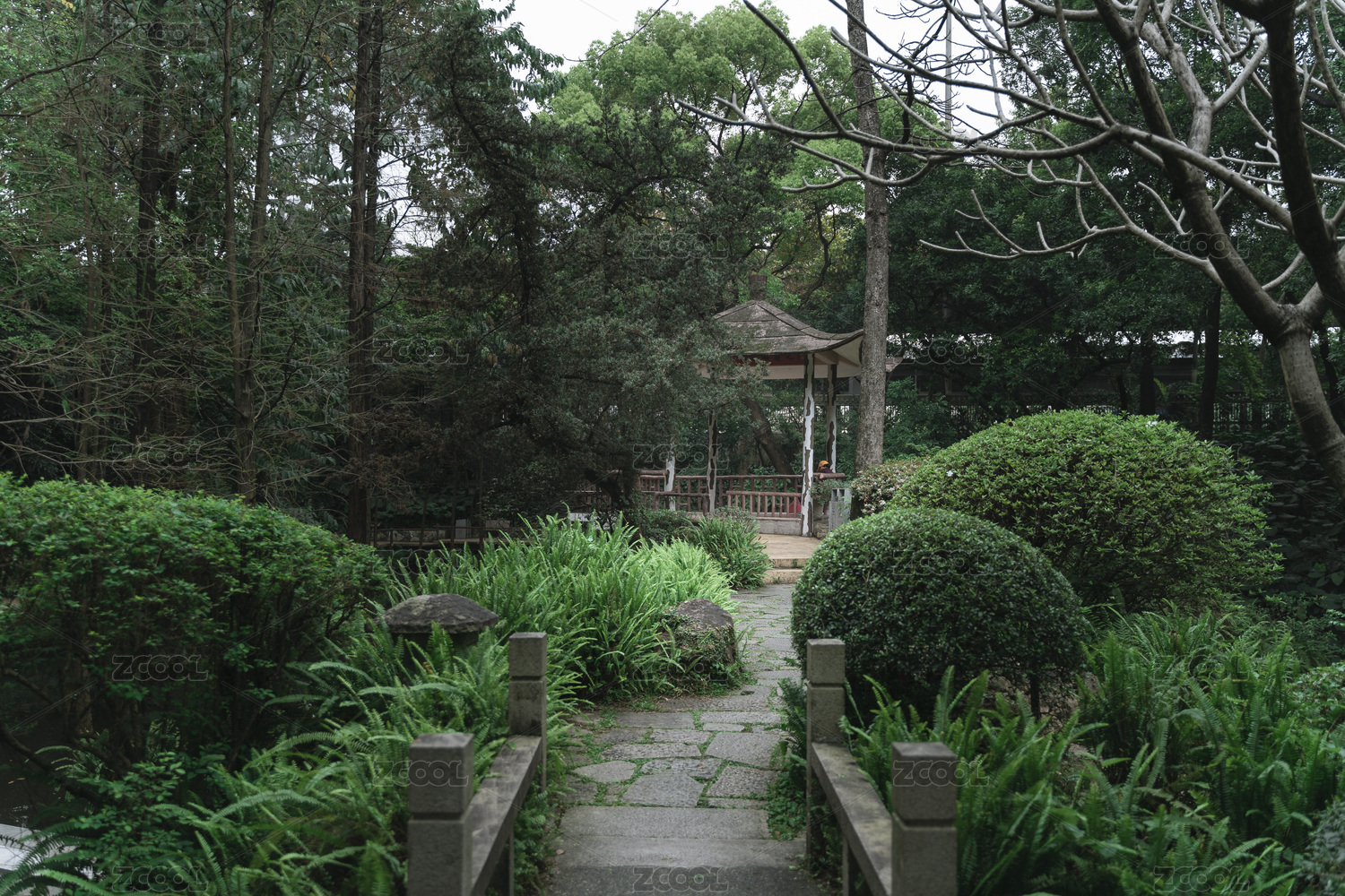 重庆渝中区鹅岭公园一处被植物围绕的假山石