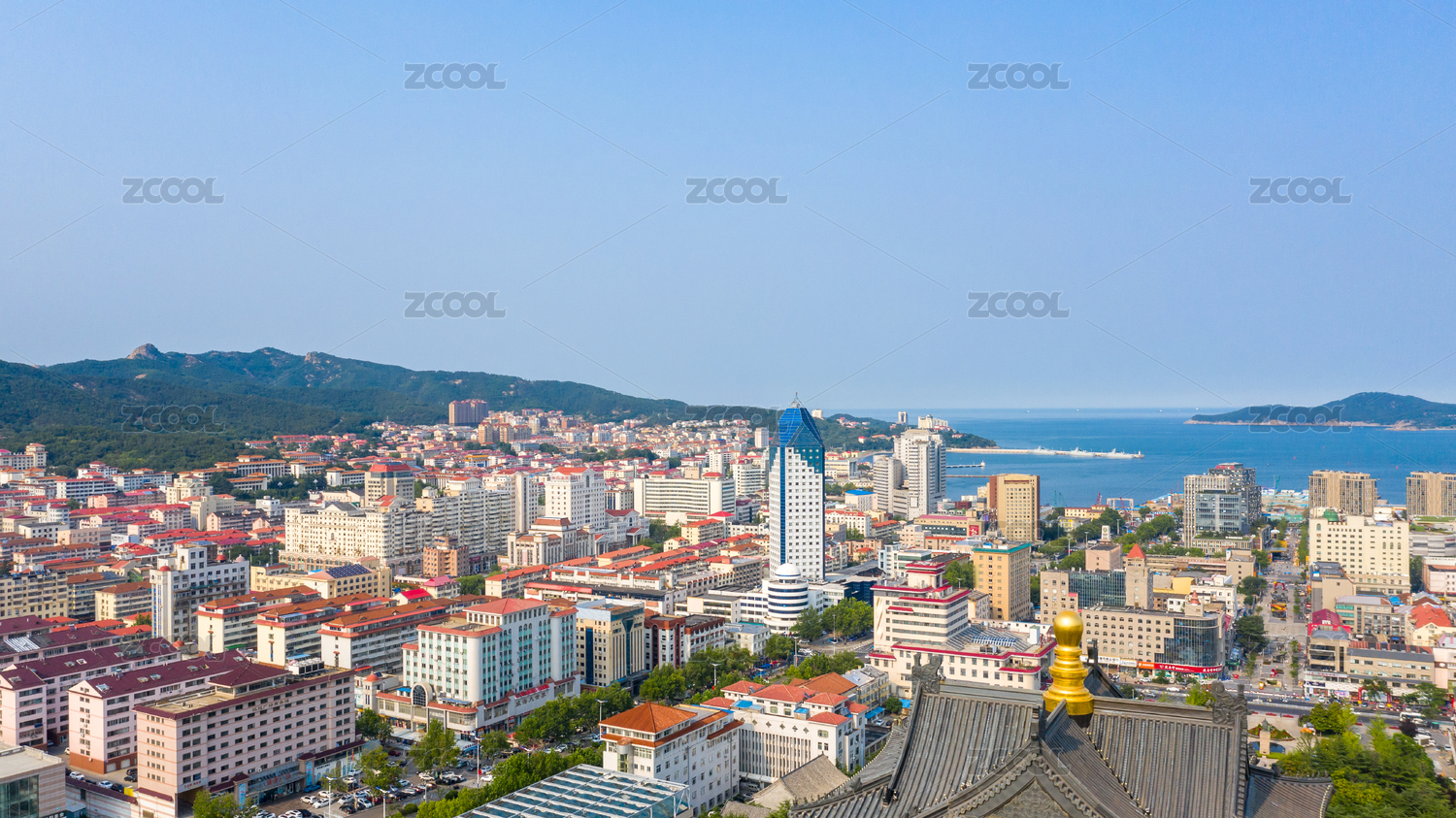 俯瞰青岛海湾城市景观