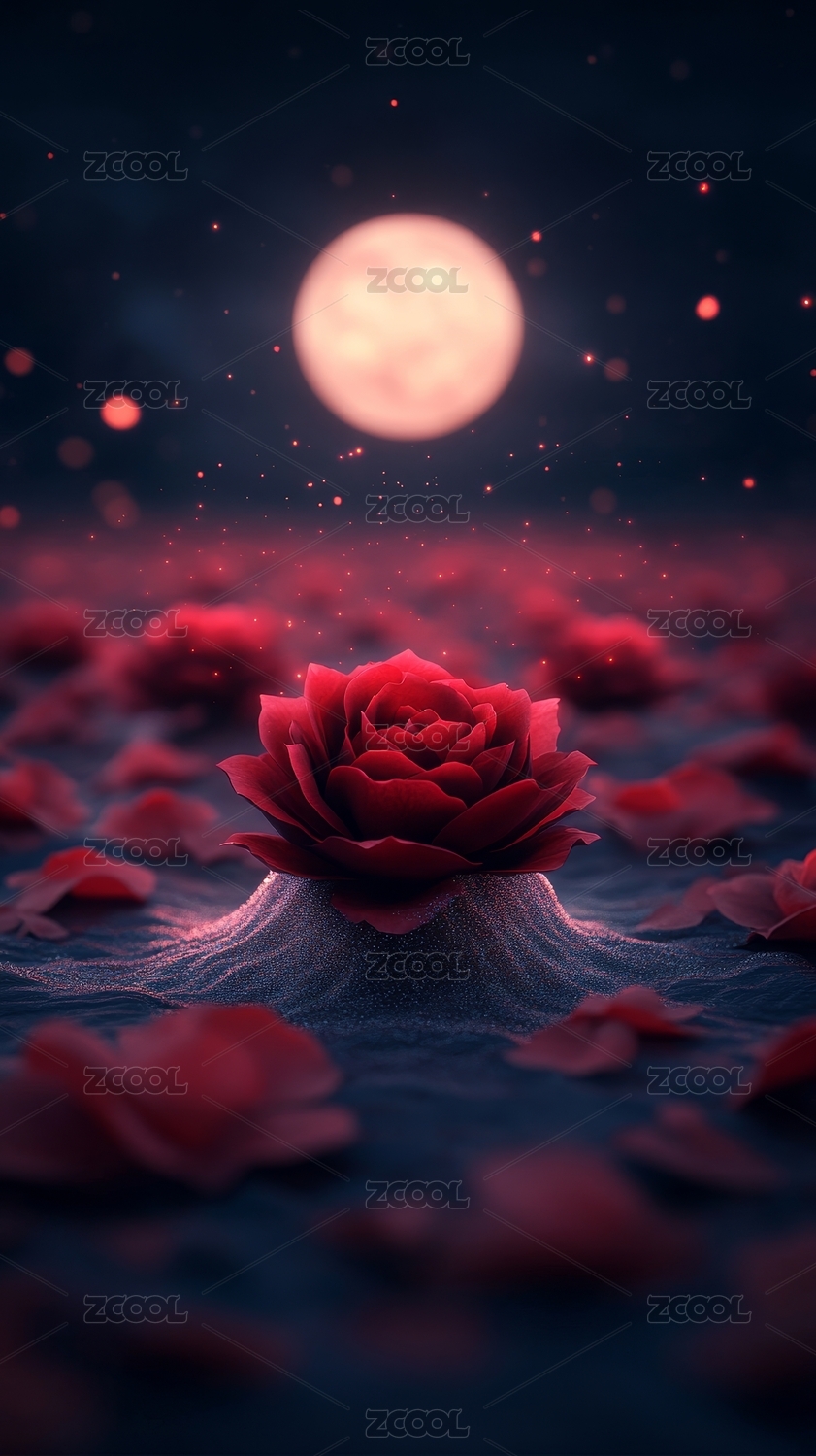 星空下绽放的红色玫瑰