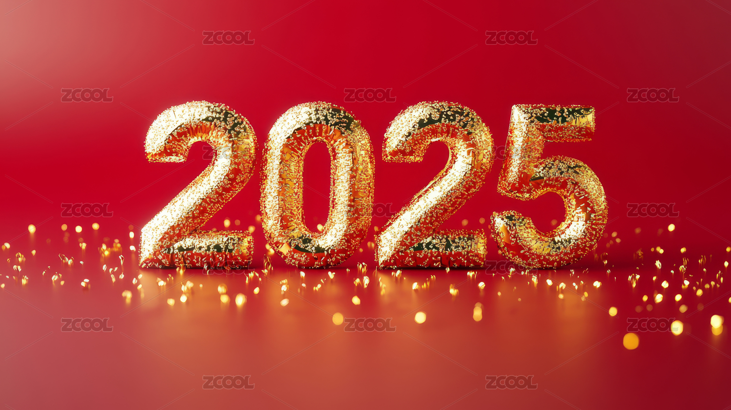 红色喜庆金色立体数字2025
