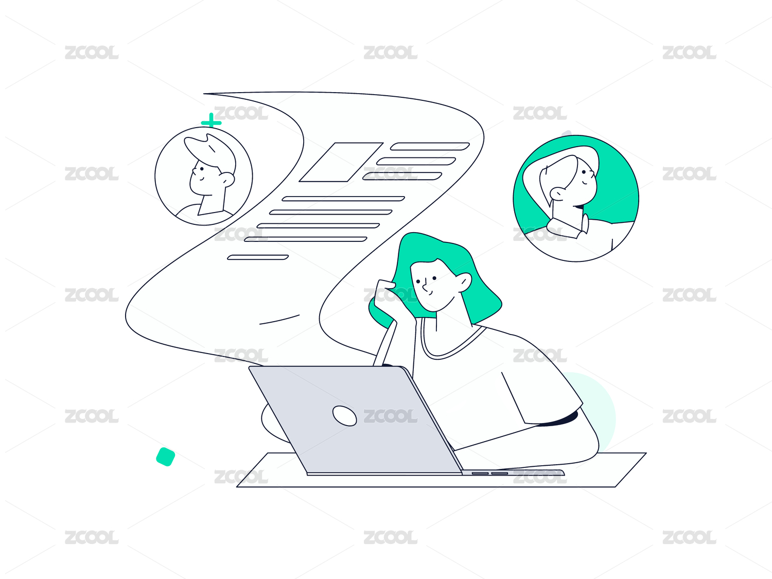 商务人物运营工作场景扁平矢量插画