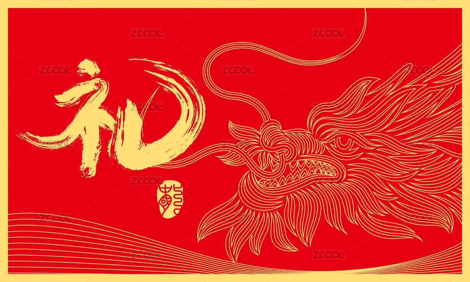 插画,传统,春节,节日,龙年,龙抬头,龙头,新年,中国文化,中式