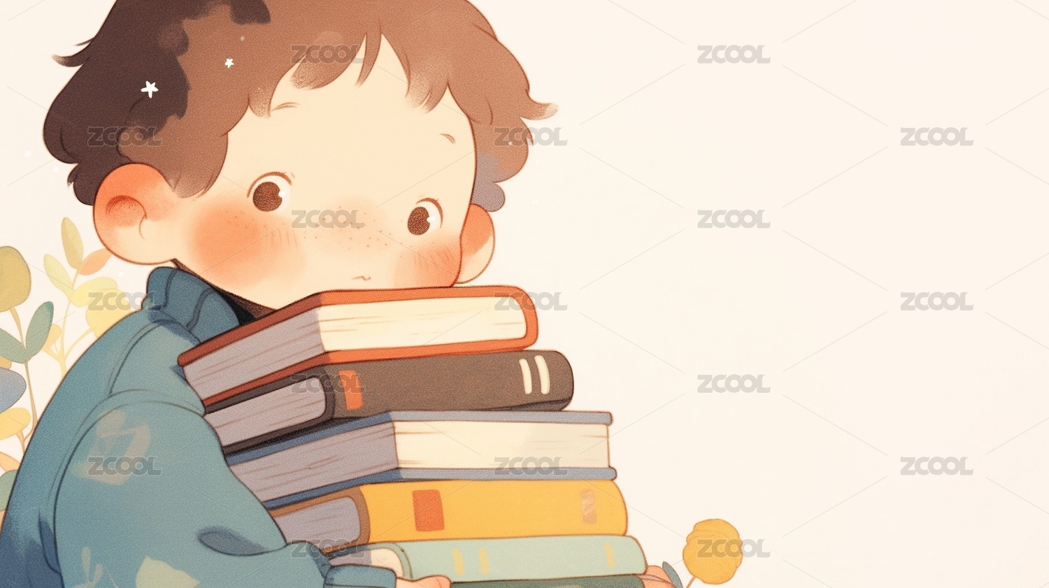 抱着一摞书的小孩