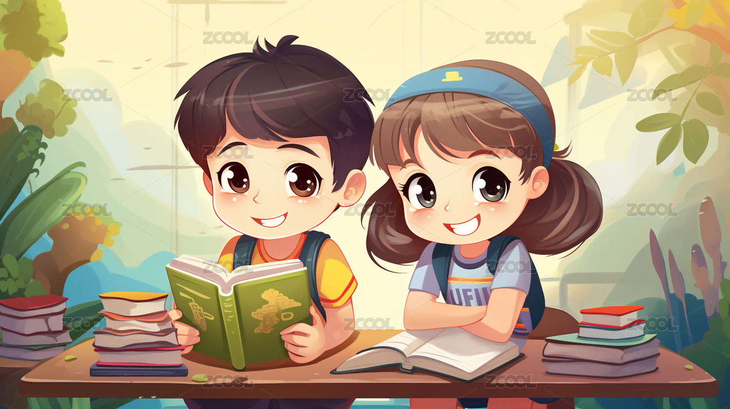 AIGC202402,读书日,学习,书本,学生,儿童,卡通,插画