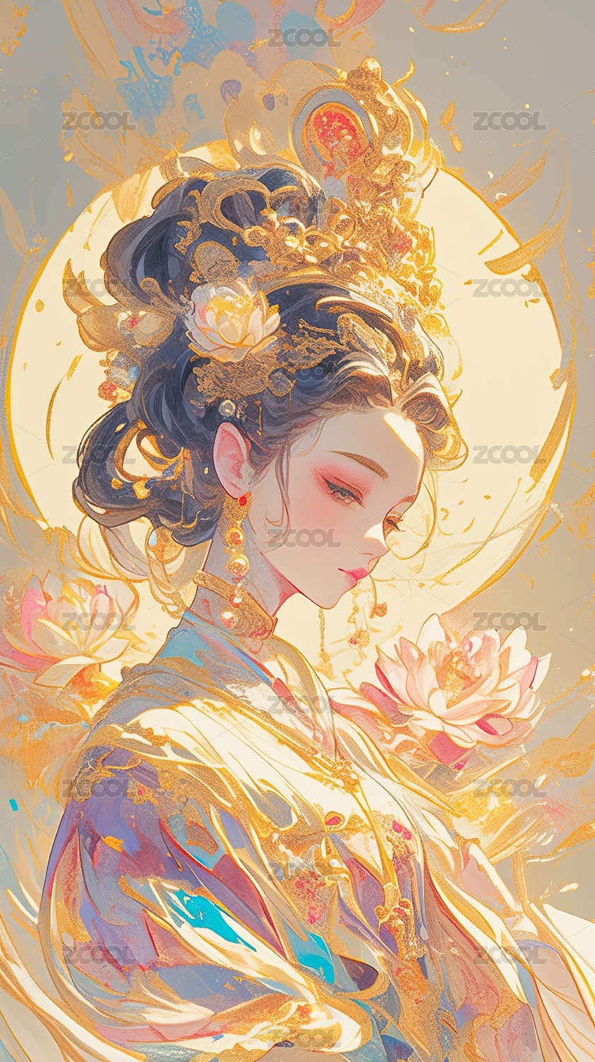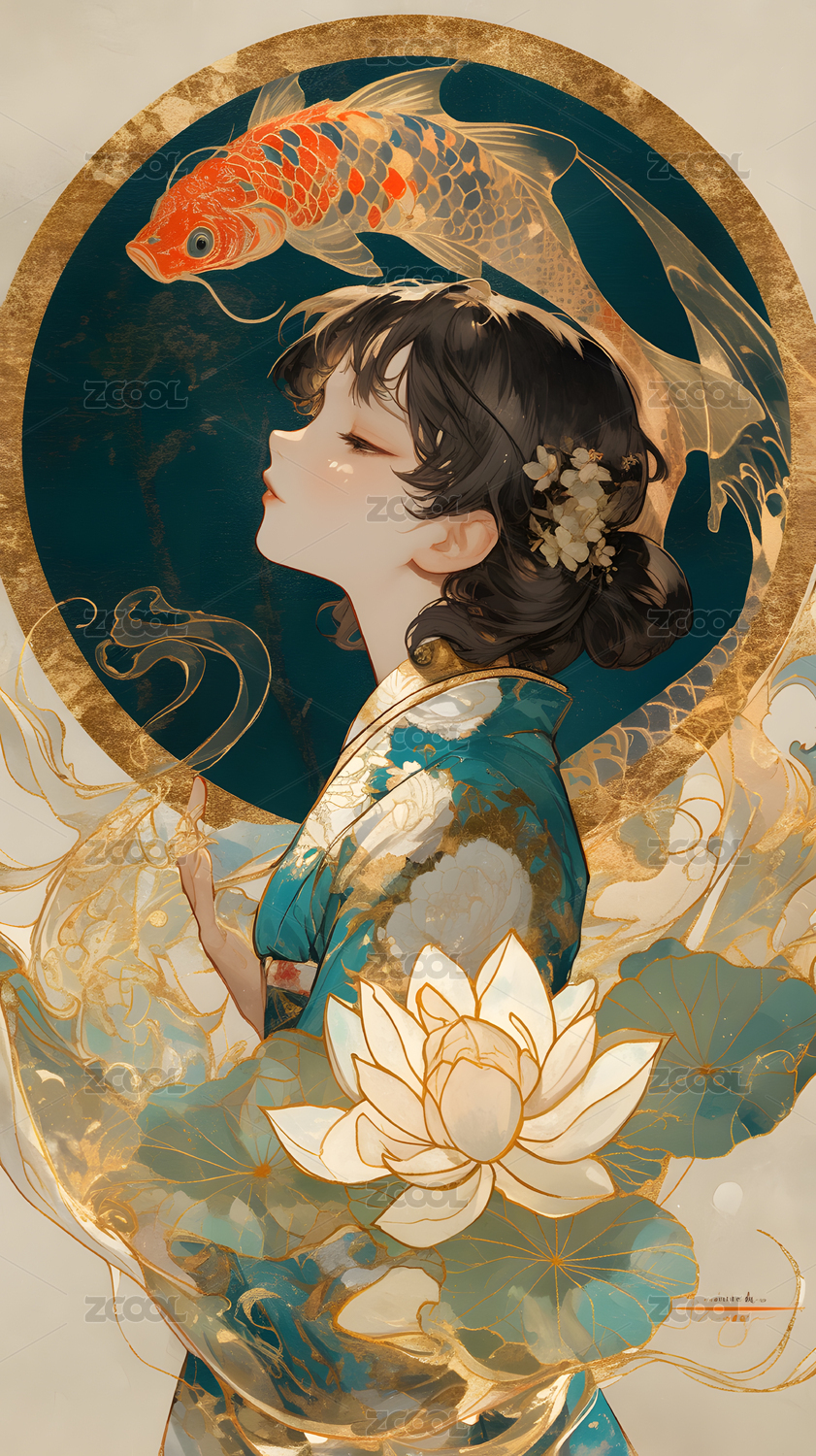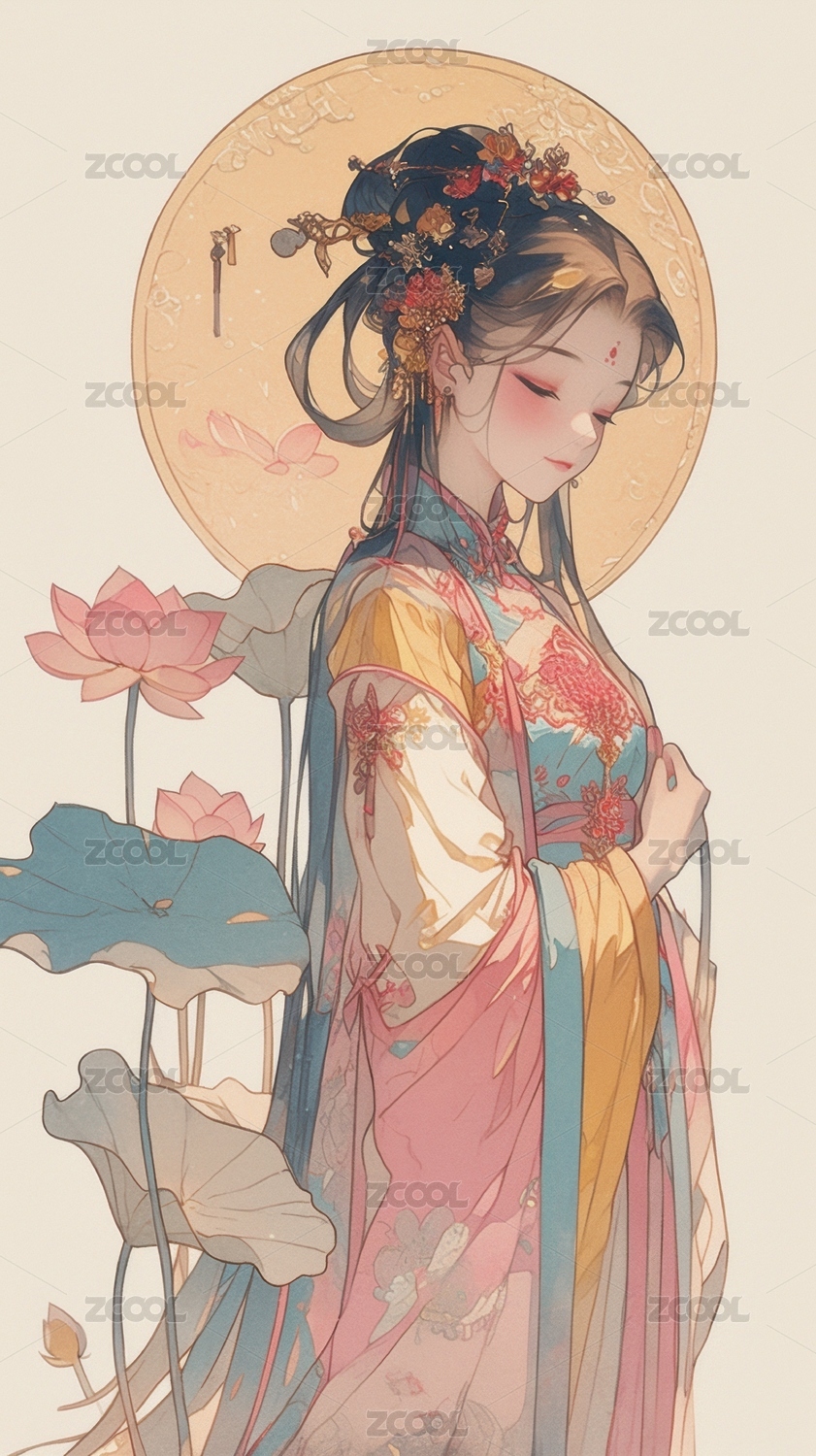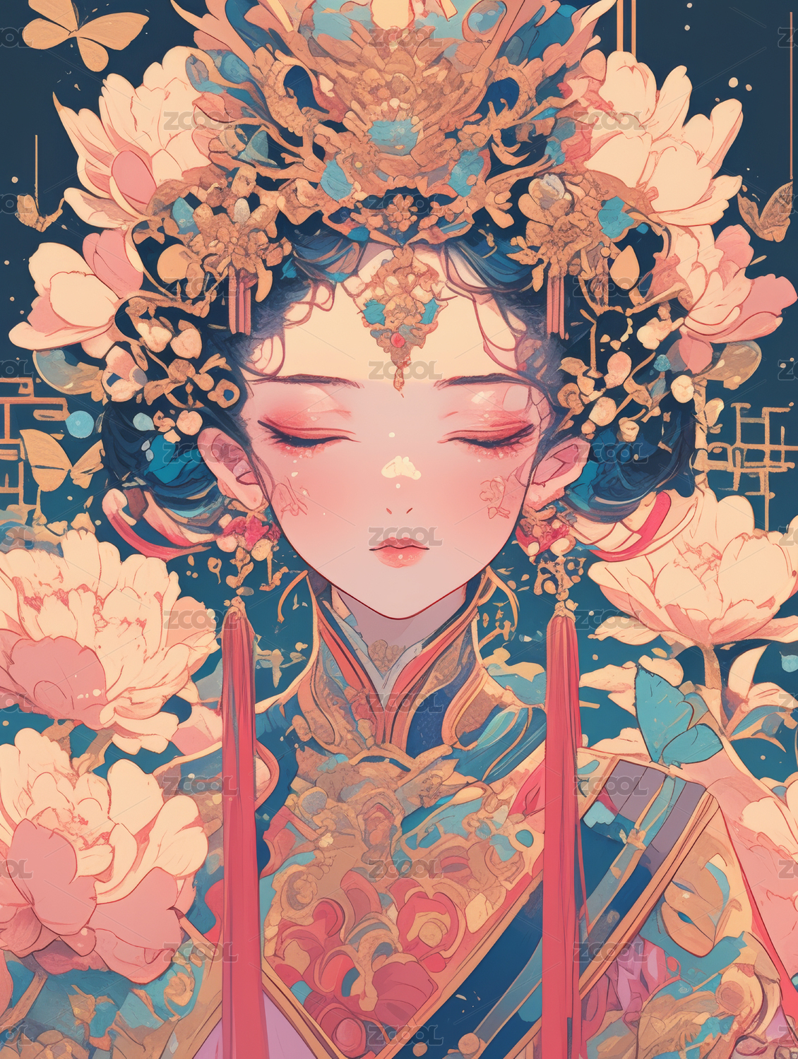 AIGCFG,中国风,插画,中式风格,国潮风,国风,美女,少女,女孩