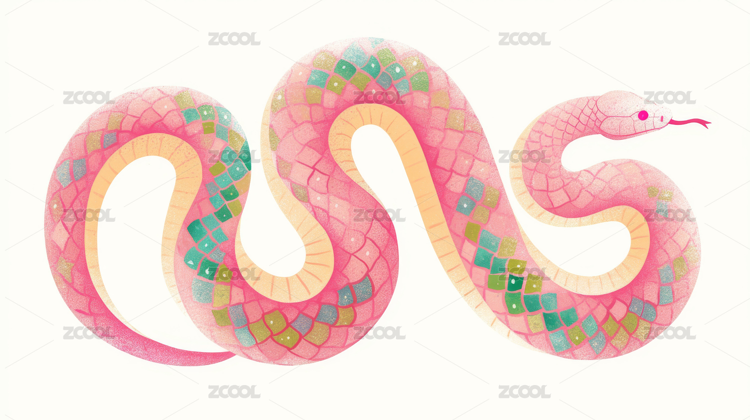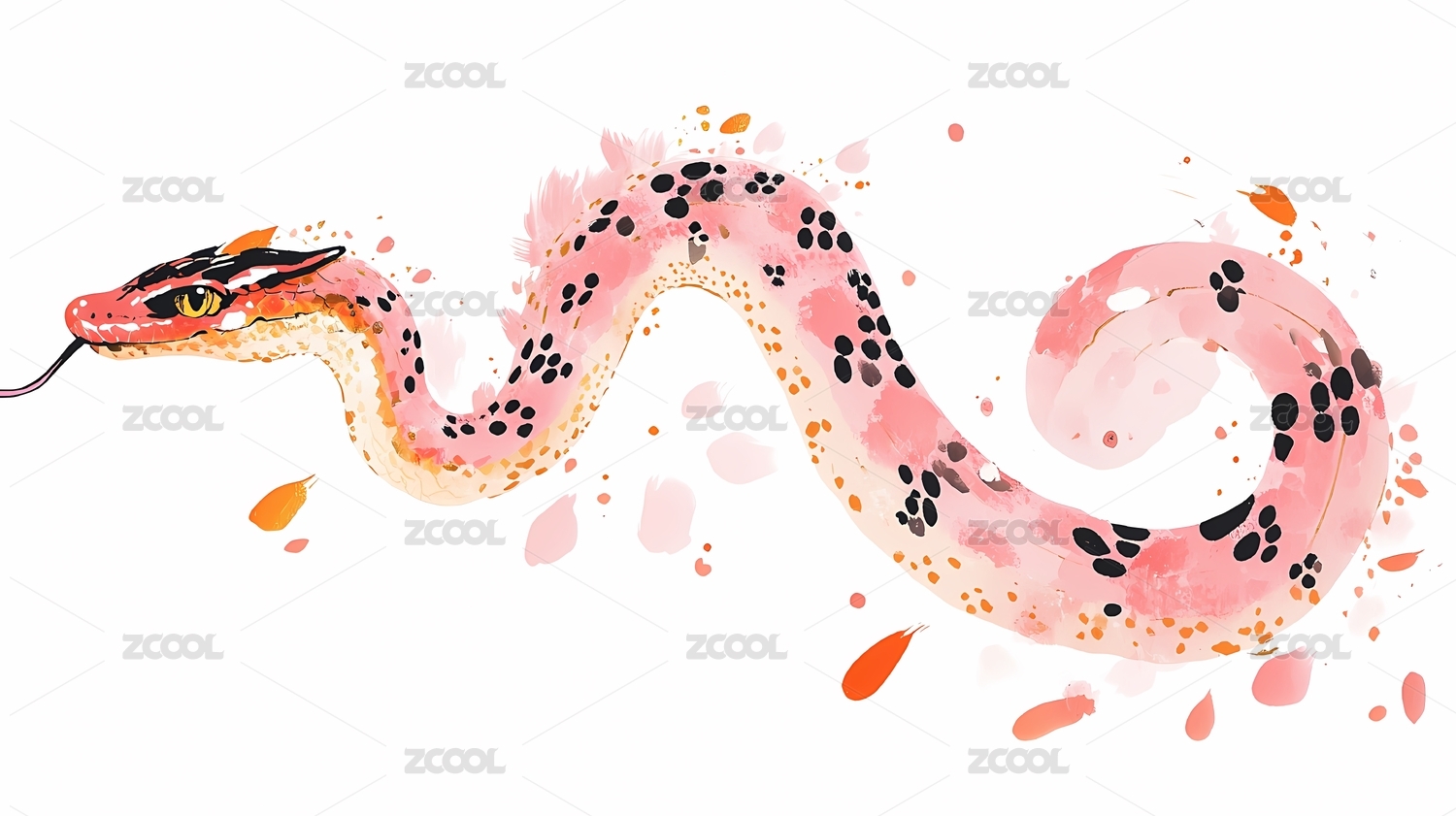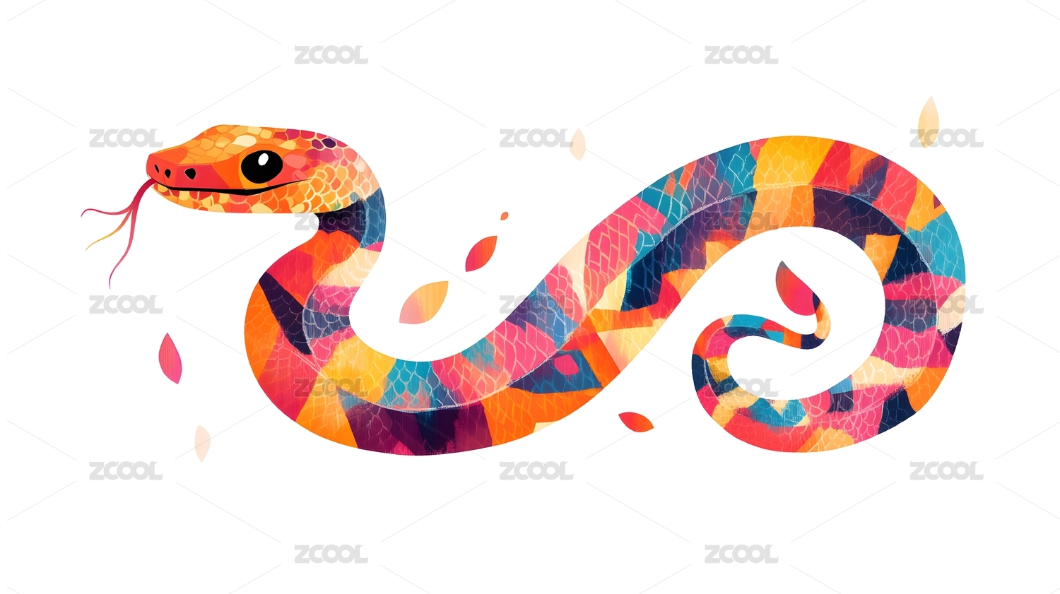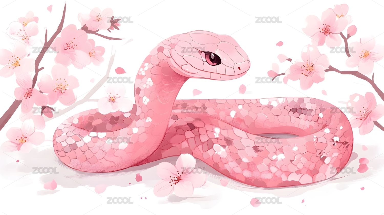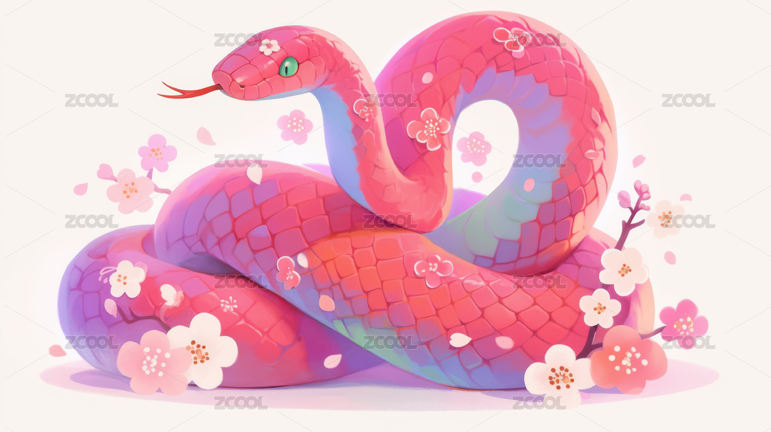 中国风,国潮风,蛇,蛇年,生肖蛇,剪纸,卡通,插画,花,花蛇